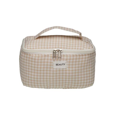 Travel Vanity Case Versa Vichy Beige Polyester Textile 12 x 12 x 20 cm