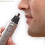 Braun Exact Series Ear & Nose-ը մազ կտրող է, որը հատուկ նախագծված է ականջների և քթի անձնական խնամքի համար, համատեղելով գործնականությունն ու տեխնոլոգիան կոմպակտ, արդյունավետ սարքում։ Պատրաստված լինելով չժանգոտվող պողպատից, այն ապահովում է դիմացկունություն և հեշտ մաքրում՝ շնորհիվ իր լվացվող և ջրակայուն դիզայնի, որը թույլ է տալիս անմիջապես լվանալ ծորակի տակ՝ յուրաքանչյուր օգտագործումից հետո օպտիմալ հիգիենայի համար։ Դրա էրգոնոմիկ ձևը հեշտացնում է կառավարումը և զգայուն հատվածներին անվտանգ մուտքը, ապահովելով հարմարավետություն անլար կտրման ժամանակ, որը չի սահմանափակում շարժումը, քանի որ այն աշխատում է մարտկոցներով, մասնավորապես՝ ներառյալ Duracell AA մարտկոց՝ անհապաղ ինքնավարության և հեշտ փոխարինման համար։ Այս Braun մոդելը առանձնանում է իր որակով և հուսալիությամբ, ինչպես նաև անլար լինելով և նախագծված լինելով անվտանգ և հիգիենիկ օգտագործման համար, իդեալական է նրանց համար, ովքեր փնտրում են դեմքի մազերի ճշգրիտ և հարմարավետ խնամք փոքր, դժվարամատչելի տարածքներում՝ առանց ջանքերի։ Տեխնիկական առանձնահատկությունների և մաքրման ու օգտագործման վրա կենտրոնացած դիզայնի համադրությունը Braun Exact Series-ը դարձնում է գործնական և դիմացկուն գործիք ամենօրյա անձնական խնամքի համար։