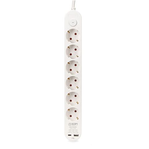 Հոսանքի վարդակ - 6 վարդակ անջատիչով EDM 41825 սպիտակ 3680 Վտ 250 Վ 30 Վտ (1,5 մ)