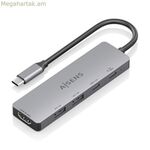 The ASUC-5P028-GR from Aisens is a versatile dockstation designed to expand the capabilities of devices with a USB-C interface, ideal for professionals who need to turn their laptop or tablet into an efficient and portable workstation. This adapter offers comprehensive connectivity with a compact and sleek design, made from a combination of aluminum and plastic that provides lightness and durability, finished in gray to highlight its modern look. It features a built-in 15 cm cable with a USB-C 3.2 Gen 1 connector for fast data transfer speeds up to 5 Gbit/s and a maximum power delivery of 100 W via USB Power Delivery, allowing efficient charging of the main device (laptop or tablet) while using other peripherals. This dockstation includes an HDMI output capable of transmitting video at 4K Ultra HD (3840×2160 at 60 Hz), enabling connection to external monitors or TVs to expand workspace or enjoy high-definition content. Additionally, it has three extra ports for connecting various accessories: two USB-A 3.2 ports for classic devices like mice, keyboards, or external hard drives, and one additional USB-C port for data or power, offering a versatile and complete solution for managing multiple devices simultaneously. With compact dimensions of 31 mm wide, 109 mm deep, and 11 mm high, this docking station is easy to carry and store, perfect for users who need mobility without sacrificing functionality. The technical design of this model ensures compatibility with various systems and optimizes energy efficiency, guaranteeing a smooth and secure experience for connecting, transferring data, and charging multiple devices at once. This product is suitable for both professional and home users looking to optimize their tech setup with a reliable and stylish solution. In short, the Aisens ASUC-5P028-GR dockstation offers a balanced mix of performance, versatility, and compact design, transforming any USB-C device into a powerful and multifunctional mobile workstation.