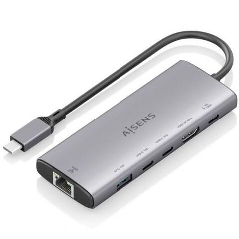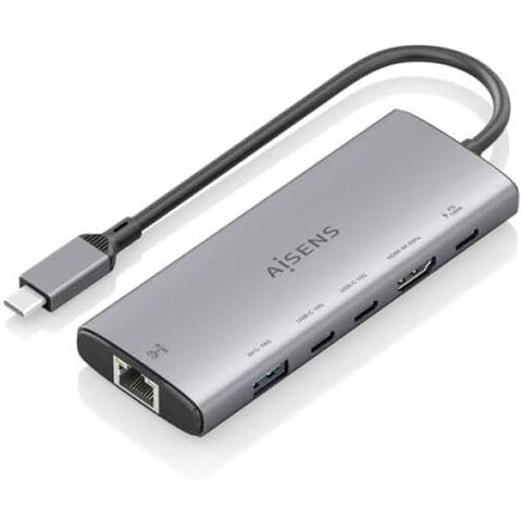 The ASUC-6P030-GR dockstation from Aisens is an essential connectivity device that transforms any laptop or tablet with a USB-C interface into a complete and versatile workstation. Housed in a sleek gray aluminum and plastic casing, this compact and lightweight accessory includes a wide range of ports to expand connection capabilities. It features an HDMI port supporting resolutions up to 4K Ultra HD (3840×2160) at 60 Hz, allowing connection to external monitors with optimal visual quality. Its RJ45 Ethernet LAN port provides a stable and fast network connection, compatible with speeds of 10, 100, and 1000 Mbit/s under IEEE 802.3 standards, ideal for professional environments requiring reliable wired internet access. Additionally, it includes one USB-A 10G port and two USB-C 10G ports for high-speed data transfer up to 10 Gbit/s, enabling simultaneous use of accessories such as external hard drives, keyboards, mice, or smartphones. The device also offers a USB-C port with Power Delivery (PD) up to 100 W to power and charge laptops or tablets while using other connections, eliminating the need for multiple chargers or cables. The integrated USB cable measures 20 cm, providing convenience without tangles and easy portability. Compatible with Windows 10 and 11, macOS from Yosemite onward, and iPadOS, this multiport dock adapts to a wide range of modern devices using USB 3.2 Gen 1 (Type-C). Its wired technology ensures a stable, latency-free connection, ideal for mobile professionals requiring maximum efficiency and functionality in a compact, durable design without sacrificing modern aesthetics. In short, the ASUC-6P030-GR dockstation by Aisens is a practical and complete solution to expand the possibilities of any USB-C laptop, combining versatility, power, and advanced connectivity in a single device.