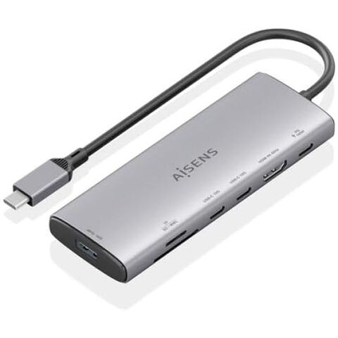 The Dockstation ASUC-7P031-GR from Aisens is an advanced docking station designed to expand the capabilities of laptops and tablets via its USB-C 3.2 Gen 1 (3.1 Gen 1) Type-C interface. With a sturdy gray aluminum and plastic casing, it combines lightness and a compact design, measuring 46 mm wide, 128 mm deep, and 15 mm high, ideal for portable and comfortable use. This multifunctional device includes a full set of ports such as an HDMI port supporting 4K UHD resolutions up to 3840×2160 at 60 Hz, allowing connection to high-definition external displays with smooth playback, perfect for presentations, editing, or entertainment. It also features a USB-A 10G for traditional devices and two USB-C 10G ports supporting ultra-fast data transfer up to 10 Gbit/s, enabling efficient connection of peripherals like external drives, keyboards, or mice. For power solutions, it includes a USB-C PD port with up to 100 W power, allowing charging of the connected laptop or tablet as well as powering compatible devices, eliminating the need for multiple chargers. This dock also has two memory card readers compatible with a wide range of standard formats (SD, SDHC, SDXC, MicroSD, MicroSDHC, MicroSDXC, MMC, RS-MMC), providing direct access to files and photos from cameras or mobile devices. Power is supplied through the USB-C port itself, and its integrated 0.2-meter cable ensures a stable connection. Thus, the Aisens Dockstation ASUC-7P031-GR stands as a comprehensive and practical solution for users seeking to maximize connectivity and functionality of their USB-C devices with a durable, compact, and highly versatile product for professional and personal environments.