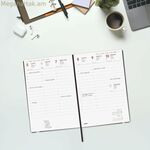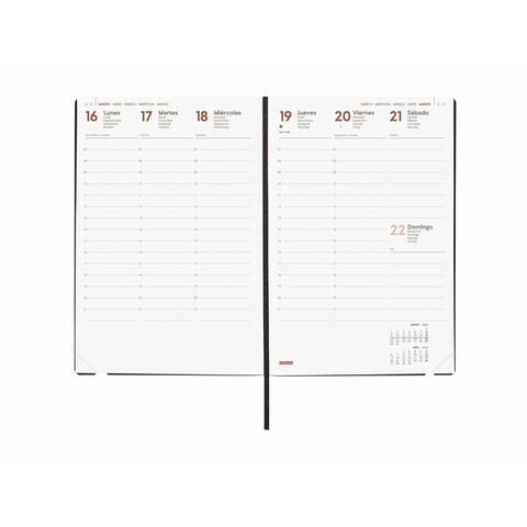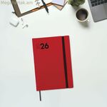 Finocam օրացույցը ներկայացվում է որպես ամենօրյա կազմակերպման պրոֆեսիոնալ և գործնական լուծում, նախագծված ժամանակակից ոճով և DIN A5-ին նման փոխադրելի ձևաչափով, մոտավորապես 14 x 20.4 սմ չափսերով: Այս փափուկ կազմով օրացույցը, որը կազմված է ճկուն պոլիուրեթանից, ապահովում է փափուկ և հաճելի հպում՝ նպաստելով հարմարավետ գրելուն՝ շնորհիվ իր կատարյալ բացման: Այն պատրաստված է քլոր չպարունակող FSC հավաստագրված թղթից՝ 80 գրամ քաշով, ապահովելով բարձր որակ և դիմացկունություն ամենօրյա օգտագործման համար: Դրա խելացի դիզայնը ներառում է առաձգական ժապավեն՝ այն փակ պահելու համար, և էջանիշի ժապավեն՝ միկրո-ծակոտկեն անկյուններով՝ ընթացիկ օրը կամ շաբաթը արագ գտնելու համար: Բովանդակության դասավորությունը ուղղահայաց շաբաթվա տեսք է, որը ներառում է 12 ամսվա (հունվար-դեկտեմբեր) լրիվ տարեկան օրացույց՝ համապատասխան տեղեկատվությամբ, ինչպիսիք են ազգային տոները, սեզոնային փոփոխությունները և անվանակոչման օրերի տոնակատարությունները, ինչպես նաև չինական, մուսուլմանական, ուղղափառ և եբրայական նոր տարիների մեկնարկի ամսաթվերը: Այն ներառում է օգտակար լրացուցիչ բովանդակություն, ինչպիսիք են անձնական տվյալները, ժամանակացույցերը, կարևոր ամսաթվերը, երկամյա տարեկան պլանի օրացույցը, ճանապարհորդության պլանավորումը, տարածաշրջանային և ազգային տոները, միջազգային տոները և այլ գործնական տարրեր, ինչպիսիք են ստեղնաշարի կարճ հղումները և փոխարկիչները: Լեզուն իսպաներեն է, որը նախատեսված է իսպանախոս լսարանի համար, որը փնտրում է գործնականություն և մանրամասներ իրենց օրակարգում: Շնորհիվ ֆունկցիոնալության, կառավարելի չափսերի և ժամանակակից դիզայնի՝ կարմիր գույնով, այս Finocam օրակարգը իդեալական է ինչպես աշխատանքային, այնպես էլ անձնական օգտագործման համար՝ առաջարկելով ժամանակի կառավարման ամբողջական գործիք, որը համատեղում է փոխադրելիությունն ու օգտագործման հեշտությունը լայնածավալ տեղեկատվական ռեսուրսների հետ։