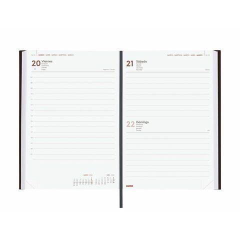 Finocam-ի DYNAMIC MILANO պլանավորիչը պրոֆեսիոնալ արտադրանք է, որը համատեղում է դասական, էլեգանտ դիզայնը 2026 թվականի ընթացքում արդյունավետ պլանավորման համար նախատեսված առանձնահատկությունների հետ: Այն ունի սև փափուկ արհեստական կաշվից պատրաստված կոշտ կազմ, ամուր և բարձրորակ, ապահովելով դիմացկունություն և առանձնահատուկ տեսք: Դրա մոտավոր չափը 21 x 27 սմ է, համեմատելի DIN A5 ձևաչափի հետ, ինչը այն հարմար է դարձնում ինչպես շարժական, այնպես էլ սեղանի վրա օգտագործման համար: Այն պատրաստված է 80 գրամ քլոր չպարունակող FSC-սերտիֆիկացված թղթից, ինչը ապահովում է էջերի ամրությունը և շրջակա միջավայրի նկատմամբ հոգատարությունը: Ներքին դասավորությունը կազմակերպված է ուղղահայաց շաբաթվա ձևաչափով, որը ապահովում է շաբաթական օրացույցի պարզ և հարմարավետ դիտում՝ հեշտացնելով հանդիպումների և առաջադրանքների գրառումը և վերանայումը: Բացի այդ, այն ներառում է գործնական ժապավենային նշիչ և միկրո-անցքավոր անկյուններ համակարգ՝ ընթացիկ օրը կամ շաբաթը արագ գտնելու համար, օպտիմալացնելով օրական պլանավորողի օգտագործումը: Դրա օրացույցը ընդգրկում է 2026 թվականի 12 ամիսները (հունվարից դեկտեմբեր) և ներառում է համապատասխան լրացուցիչ բովանդակություն, ինչպիսիք են անվանակոչման օրերը, ազգային և միջազգային տոները, սեզոնային փոփոխությունները և տարիների սկզբի հղումները՝ համաձայն չինական, մուսուլմանական, ուղղափառ և հրեական օրացույցների: Այն նաև առաջարկում է լրացուցիչ բաժիններ անձնական տվյալների, ժամանակացույցերի, տարեկան պլանավորման մինչև երկու տարի ժամկետով, ճանապարհորդության կազմակերպման և գործնական գործիքների համար, ինչպիսիք են Google-ում որոնում կատարելը կամ ստեղնաշարի դասավորությունը, ընդլայնելով իր օգտակարությունը պարզ պլանավորողից այն կողմ: Այն ամբողջությամբ իսպաներեն է, հեշտացնելով օգտագործումը ազգային շուկայի և իսպանախոս օգտատերերի համար: Ընդհանուր առմամբ, Finocam DYNAMIC MILANO պլանավորիչը համատեղում է ֆունկցիոնալությունը, նյութի որակը և դիզայնը, որը հարմարեցված է պրոֆեսիոնալ օգտատերերի համար, ովքեր պահանջում են մանրամասն, հստակ և նրբագեղ պլանավորում ամբողջ տարվա ընթացքում։