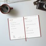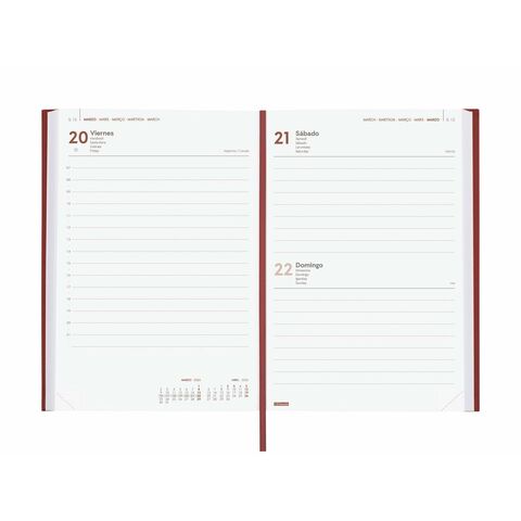 Finocam-ի DYNAMIC MILANO պլանավորիչը պրոֆեսիոնալ գործիք է, որը նախատեսված է 2026 թվականի տարեկան կազմակերպման համար, համատեղելով ֆունկցիոնալությունն ու նրբագեղությունը գործնական A5 ոճի ձևաչափով: Այն ունի կոշտ բորդո արհեստական կաշվե ծածկոց, որն առաջարկում է դիմացկունություն և դասական տեսք, մինչդեռ կազմը թույլ է տալիս լիարժեք բացել այն հեշտ գրելու համար: Դրա էջերը տպագրված են 80 գ/մ² FSC հավաստագրված քլոր չպարունակող թղթի վրա, ապահովելով կայունություն և քաշի որակ, ինչպես նաև ուղղահայաց շաբաթական դասավորությամբ, որը իդեալական է միջոցառումների և հանդիպումների հստակ պլանավորման համար: Այն ներառում է արագ հղման գործառույթներ, ինչպիսիք են ժապավենային նշիչը և միկրո-անցքավոր անկյունները՝ ընթացիկ օրը կամ շաբաթը հեշտությամբ որոշելու համար։