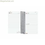 Finocam YEAR օրացույցը կոմպակտ և գործնական արտադրանք է, որը նախատեսված է նրանց համար, ովքեր կարիք ունեն արդյունավետ կազմակերպման մինի ձևաչափով, որը հեշտացնում է ամենօրյա տեղափոխումը: Այն ունի պարուրաձև կազմ՝ հարմարավետ բացման և ցանկացած էջի արագ մուտքի համար: Դրա սև պոլիպրոպիլենային ծածկոցները ապահովում են թեթևություն և դիմացկունություն, լրացվում են առաձգական ժապավենով, որը պաշտպանում է բովանդակությունը և կանխում պատահական բացումները: Օրացույցը պատրաստված է 80 գրամ քլոր չպարունակող FSC-սերտիֆիկացված թղթից, որը ապահովում է գրելու օպտիմալ որակ և շրջակա միջավայրի նկատմամբ պարտավորություն: Դրա կոմպակտ չափը՝ մոտավորապես 7.9 x 12.7 սմ, իդեալական է ձեզ հետ տանելու համար անձնական կամ մասնագիտական օգտագործման համար: Դիզայնը ներառում է միկրո-անցքավոր անկյուններ՝ ընթացիկ օրվա կամ շաբաթվա արագ գտնվելու վայրը որոշելու համար, և հորիզոնական դասավորություն՝ շաբաթը մեկ հայացքով ձևաչափով, որը ապահովում է պլանավորման պարզություն և ֆունկցիոնալություն: Այս պլանավորողը տրամադրում է ամբողջական 12-ամսյա օրացույց (հունվարից դեկտեմբեր), որը ներառում է անվանակոչման օրերի, ազգային տոների, սեզոնային փոփոխությունների և տարվա սկզբի վերաբերյալ մանրամասն տեղեկատվություն՝ ըստ տարբեր մշակութային օրացույցների, ինչպիսիք են չինականը, մուսուլմանականը, ուղղափառը և եբրայականը, հարստացնելով օգտատիրոջ տարեկան կազմակերպչական փորձը: Բացի այդ, այն պարունակում է գործնական լրացուցիչ նյութեր, ինչպիսիք են անձնական տվյալների էջերը, ժամանակացույցերը, ընթացիկ և հաջորդ տարվա տարեկան պլանավորումը, ժամային գոտիների քարտեզները, Եվրոպայի քարտեզը և արտադրողականությունը բարելավելու թվային գործիքների վերաբերյալ ուղեցույցը: Այս ամենը ներկայացված է ժամանակակից դիզայնով, որը համատեղում է ֆունկցիոնալությունը զուսպ, պրոֆեսիոնալ ոճի հետ: Ընդհանուր առմամբ, Finocam YEAR պլանավորողը կոմպակտ, թեթև և գործնական լուծում է նրանց համար, ովքեր գնահատում են տարվա ընթացքում մանրամասն և մատչելի կազմակերպումը։