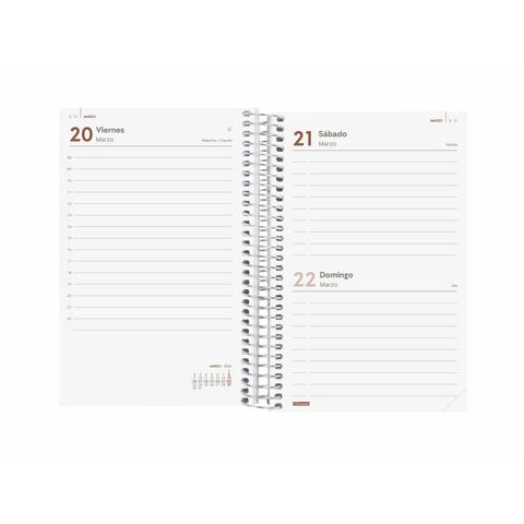 Finocam-ի YEAR պարուրաձև պլանավորիչը գործնական և ժամանակակից կազմակերպչական գործիք է, որը նախատեսված է անձնական և մասնագիտական օգտագործման համար, որը աչքի է ընկնում ֆունկցիոնալության և ուշադիր ընտրված նյութերի համադրությամբ: Այն ունի բաց կարմիր պոլիպրոպիլենային ծածկոցներ, որոնք ամուր և ճկուն են, լրացված է առաձգական ժապավենով՝ փակումը ամրացնելու և տեղափոխման ընթացքում պարունակությունը պաշտպանելու համար: Դրա մոտավորապես 11.7 x 18.1 սմ չափը այն դարձնում է կոմպակտ և կառավարելի, հեշտ տեղափոխելի ցանկացած պայուսակում կամ մեջքի պայուսակում: պարուրաձև կազմը թույլ է տալիս էջի լիարժեք և հարմարավետ պտտում, միկրո-անցքավոր անկյուններով՝ ընթացիկ օրը կամ շաբաթը արագ գտնելու համար, ինչը հեշտացնում է անհապաղ խորհրդատվությունը և պլանավորումը: Այս իսպաներեն պլանավորիչը առաջարկում է հորիզոնական շաբաթվա տեսք՝ 12 ամսվա (հունվարից դեկտեմբեր) ամբողջական տարեկան օրացույցով, որը ներառում է անվանակոչման օրերի, ազգային տոների, սեզոնային փոփոխությունների և չինական, մուսուլմանական, ուղղափառ և եբրայական նոր տարիների համապատասխան ամսաթվերի վերաբերյալ մանրամասն տեղեկատվություն՝ մշակութային և գործնական արժեք հաղորդելով օգտատիրոջը: Բացի այդ, այն ներառում է լրացուցիչ բովանդակություն, ինչպիսիք են անձնական տվյալները, ժամանակացույցերը, ընթացիկ և հաջորդ տարվա տարեկան պլանավորումը, միջազգային տոները, Google-ում որոնման, ստեղնաշարի օգտագործման խորհուրդները, ինչպես նաև Եվրոպայի և ժամային գոտիների քարտեզները, ինչը այն դարձնում է համապարփակ ռեսուրս: Օգտագործված թուղթը 80 գրամ ստանդարտ քաշ ունի և FSC հավաստագրված է որպես քլոր չպարունակող, ինչը ապահովում է կայունություն, ինչպես նաև գրելու օպտիմալ փորձ: Ամփոփելով՝ այս պլանավորիչը համատեղում է դիմացկուն նյութեր, ֆունկցիոնալ դիզայն և օգտակար բովանդակության լայն տեսականի՝ ամենօրյա կազմակերպվածությունը արդյունավետ կերպով պահպանելու համար։