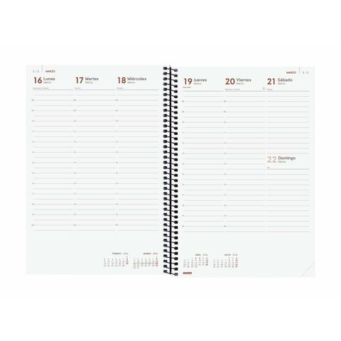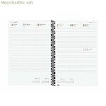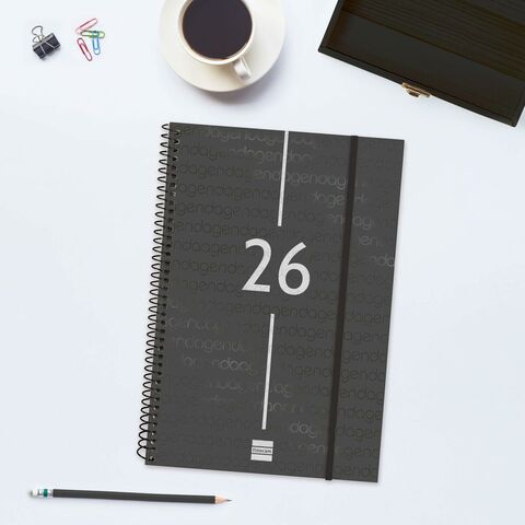 Finocam-ի YEAR պլանավորիչը ֆունկցիոնալ արտադրանք է, որը նախատեսված է անձնական և մասնագիտական օգտագործման համար, որն առանձնանում է շատ գործնական սեղանի ձևաչափով, որը իդեալական է տարին մանրամասն կազմակերպելու և պլանավորելու համար: Այս պլանավորիչը կազմված է պարույրով և ունի անթափանց սև պոլիպրոպիլենից պատրաստված կոշտ, թեթև ծածկոցներ, որոնք ապահովում են ամրություն և պաշտպանություն, լրացվում է առաձգական ժապավենով՝ պարունակությունը տեղափոխման կամ պահպանման ընթացքում անվտանգ պահելու համար: Դրա մոտավորապես 16.5 x 24.2 սմ չափսերը թույլ են տալիս պահպանել DIN A5 փաստաթղթեր և թղթեր կամ նույնիսկ ծալված DIN A4 թերթեր՝ առանց դուրս ցցված լինելու, հեշտացնելով նշումների կամ լրացուցիչ նշումների կազմակերպումը: Պլանավորիչը պատրաստված է 70 գրամանոց թղթից, որը էկոլոգիապես մաքուր է, քանի որ այն FSC հավաստագրված է և չի պարունակում քլոր, ապահովելով բարձր որակ և կայունություն: Դրա պարուրաձև կազմը թույլ է տալիս պլանավորողին հարթ դիրքով դասավորվել, ինչը հեշտացնում է գրելու և խորհրդատվական բովանդակության բովանդակությունը, և այն ունի միկրո-անցքավոր անկյուններ՝ ընթացիկ օրը կամ շաբաթը արագ գտնելու համար: Իր բովանդակության մեջ պլանավորողը ներառում է 12-ամսյա տարեկան օրացույց (հունվարից դեկտեմբեր)՝ համապատասխան տեղեկատվությամբ, ինչպիսիք են անվանակոչման օրերը, ազգային տոները, սեզոնային փոփոխությունները և տարիների սկիզբը՝ ըստ տարբեր մշակույթների, այդ թվում՝ չինական, մուսուլմանական, ուղղափառ և եբրայերեն, ինչը օգտատիրոջ համար ապահովում է համապարփակ ռեսուրս: Այն նաև ներառում է լրացուցիչ բաժիններ անձնական տվյալների, ժամանակացույցերի, ընթացիկ և հաջորդ տարվա պլանավորման, միջազգային տոների և օգտակար խորհուրդների համար, ինչպիսիք են Google որոնման տեխնիկան, որոնք բոլորը գրված են ամբողջությամբ իսպաներեն: Բովանդակության դասավորությունը կազմակերպված է մեկ օր մեկ էջում, ինչը հեշտացնում է ամենօրյա կազմակերպումը և յուրաքանչյուր օրվա հստակ, մանրամասն պատկերացումը: Այս Finocam YEAR պլանավորիչի ժամանակակից և ֆունկցիոնալ դիզայնը համատեղում է դիմացկուն նյութերը կառուցվածքի հետ, որը նախատեսված է ամենօրյա օգտագործման ժամանակ արտադրողականությունն ու հարմարավետությունը մեծացնելու համար, դարձնելով այն գործնական գործիք նրանց համար, ովքեր պետք է պլանավորեն անձնական կամ մասնագիտական օրակարգերը՝ հուսալի և որակյալ աջակցությամբ։