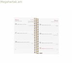Finocam-ի DESIGN COLLECTION Flora պլանավորիչը գործնական, կոմպակտ աքսեսուար է, որը նախատեսված է անձնական և մասնագիտական կազմակերպման համար՝ մինի ձևաչափով: Այն ունի թեթև, դիմացկուն պոլիպրոպիլենային ծածկոցներ և առաձգական ժապավեն, որոնք ապահովում են պաշտպանություն և տեղափոխման հեշտություն: Մոտավոր 7.9 x 12.7 սմ չափսերով այն թեթև, հեշտ տեղափոխվող ուղեկից է: Պարուրաձև կապիչը թույլ է տալիս հարմարավետ, արագ բացել՝ ցանկացած տեղեկատվություն ստուգելու կամ գրանցելու համար: Դրա ներքին դիզայնը ֆունկցիոնալ և մաքուր է՝ բավարար տարածքով նախագծեր, առաջադրանքներ և հանդիպումներ պլանավորելու համար՝ շնորհիվ իր հորիզոնական շաբաթվա տեսքի դասավորության: Այն ներառում է հունվարից մինչև դեկտեմբեր ամիսներին ամբողջական 12-ամսյա օրացույց և պարունակում է համապատասխան տարեկան տեղեկատվություն, ինչպիսիք են անվանակոչման օրերը, ազգային տոները, սեզոնային փոփոխությունները և չինական, մուսուլմանական, ուղղափառ և եբրայական նոր տարիների սկիզբը, ինչը օգտատիրոջ համար լրացուցիչ օգտակար ռեսուրս է: քլոր չպարունակող FSC թղթե նյութերի և պոլիպրոպիլենային ծածկույթների համադրությունը ապահովում է կայունության և դիմացկունության միջև հավասարակշռություն: Այն նաև ունի միկրո-անցքավոր անկյուններ՝ ընթացիկ ամսաթիվը կամ շաբաթը արագ գտնելու համար, օպտիմալացնելով օգտատիրոջ փորձը: Լրացուցիչ բովանդակությունը ներառում է անձնական տվյալների և օգտակար հղումների բաժիններ, որոնք բարելավում են պլանավորողի օգտակարությունը և անհատականացումը: Այս պլանավորողը հասանելի է բազմագույն և ներկայացված է իսպաներեն լեզվով, հարմար է այն օգտատերերի համար, ովքեր գնահատում են ֆունկցիոնալությունը, ժամանակակից դիզայնը և մանրամասն կազմակերպվածությունը՝ փոխադրելի, ամուր ձևաչափով: Ընդհանուր առմամբ, DESIGN COLLECTION Flora-ն առաջարկում է գործնական և բազմակողմանի լուծում նրանց համար, ովքեր փնտրում են կոմպակտ, ամբողջական պլանավորող ժամանակակից ոճով։