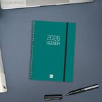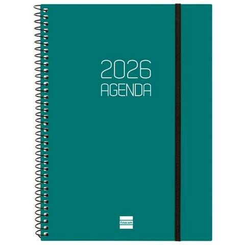 Finocam OPAQUE օրացույցը գործնական և ժամանակակից իր է, որը նախատեսված է ժամանակի արդյունավետ կազմակերպման համար՝ շարժական, ֆունկցիոնալ ձևաչափով: Այն գալիս է A5 չափսի (մոտավորապես 15.5 x 21.2 սմ), իդեալական է ամենօրյա օգտագործման կամ որպես սեղանի օրացույց, կոշտ անթափանց կանաչ պոլիպրոպիլենային ծածկոցներով, որոնք ապահովում են մեծ ամրություն և թեթևություն: Դրա պարուրաձև կազմը թույլ է տալիս լիարժեք բացել և հարմարավետ գրել, մինչդեռ առաձգական ժապավենի փակումը այն պահում է անվտանգ փակ և պաշտպանված: Միկրո-անցքավոր անկյունները օգնում են արագ գտնել ընթացիկ օրը կամ շաբաթը՝ բարելավելով օգտագործելիությունը: Պլանավորիչը ներառում է 12-ամսյա տարեկան օրացույց (հունվարից դեկտեմբեր) և լրացուցիչ օգտակար տեղեկություններ, ինչպիսիք են անվանակոչման օրերը, ազգային և միջազգային տոները, սեզոնային փոփոխությունները և չինական, մուսուլմանական, ուղղափառ և եբրայական նոր տարիների սկիզբը, ինչը այն դարձնում է տարեկան պլանավորման համապարփակ գործիք: Այն նաև ներառում է օգտակար լրացուցիչ բովանդակություն, ինչպիսիք են անձնական տվյալների, ժամանակացույցերի, ընթացիկ և հաջորդ տարվա պլանավորման էջերը, ինչպես նաև Եվրոպայի և ժամային գոտիների քարտեզները, գումարած գործնական խորհուրդներ, ինչպիսիք են Google-ի որոնումները և ստեղնաշարի օգտագործումը: Պատրաստված 70 գրամանոց FSC քլոր չպարունակող թղթից, այն ապահովում է ամենօրյա գրելու օպտիմալ որակ: Պլանավորիչը ամբողջությամբ նախագծված է իսպաներեն լեզվով, օրական մեկ էջ դասավորությամբ, որը բավարար տեղ է տրամադրում մանրամասն նշումների համար: Ամփոփելով՝ Finocam OPAQUE պլանավորիչը համատեղում է դիմացկունությունը, ֆունկցիոնալությունը և մտածված դիզայնը՝ հեշտացնելով ամենօրյա կազմակերպումը՝ գործնական և ամուր աքսեսուարի միջոցով։