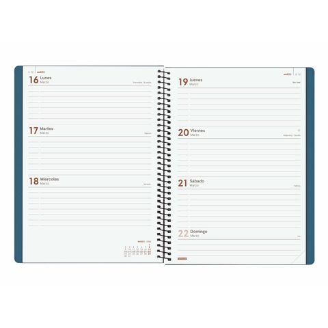 Finocam ապրանքանիշի MY պլանավորիչը նախատեսված է ֆունկցիոնալության և փոխադրելի ձևաչափի արդյունավետ համադրություն փնտրողների համար: Այն ունի էլեգանտ կոշտ ստվարաթղթե կազմ, որը պատված է կապույտ գույնի քերծվածքներից պաշտպանված անփայլ թաղանթով, որը ապահովում է մեծ ամրություն և ժամանակակից ձևավորում: Այս պլանավորիչը պարուրաձև է, ինչը հեշտացնում է էջերի բացումը և կառավարումը, և ներառում է գործնական առաձգական ժապավեն՝ այն փակ և պաշտպանված պահելու համար: Դրա մոտավոր չափը 15.5 x 21.2 սմ է, որը համարժեք է A5 ձևաչափին, որը նպաստում է ինչպես տեղափոխմանը, այնպես էլ աշխատանքային մակերեսի վրա հարմարավետ օգտագործմանը: Որակյալ թուղթը, 80 գրամ քաշով և քլոր չպարունակող, ապահովում է մաքուր գրվածք և բարձր ամրություն, հարմար է ամենօրյա օգտագործման համար: Այն ունի հորիզոնական շաբաթական դասավորություն, որն առաջարկում է ժամանակի հստակ կազմակերպում՝ նշումների և պլանավորման համար տեղով: Պլանավորիչը ներառում է ամբողջական 12-ամսյա օրացույց՝ 2026 թվականի հունվարից մինչև դեկտեմբեր, և ներառում է լրացուցիչ օգտակար տեղեկություններ, ինչպիսիք են անվանակոչման օրերը, ազգային և միջազգային տոները, սեզոնային փոփոխությունները և տարիների սկիզբը՝ ըստ չինական, մուսուլմանական, ուղղափառ և հրեական օրացույցների, ինչը լրացուցիչ արժեք է ավելացնում օգտատիրոջ համար: Դրա անկյունները միկրո-անցքավոր են՝ ընթացիկ օրվա կամ շաբաթվա արագ գտնվելու վայրը հեշտացնելու համար, ինչը մեծացնում է գործնականությունը: Այն նաև ներառում է անձնական տվյալների, ժամանակացույցերի և ընթացիկ և հաջորդ տարվա տարեկան պլանավորման հատուկ բաժիններ, ինչպես նաև օգտակար խորհուրդներ, ինչպիսիք են՝ ինչպես օպտիմալացնել Google-ի որոնումները, ամրապնդելով այս գործիքի բազմաֆունկցիոնալ բնույթը: Արտադրանքը պատրաստված է Չինաստանում և ներկայացված է իսպաներեն լեզվով, ուղղված է այն լսարանին, որը գնահատում է ֆունկցիոնալ, դիմացկուն պլանավորողը՝ դիզայնով, որը հարմար է ինչպես մասնագիտական, այնպես էլ անձնական միջավայրերի համար: Բաղադրիչների և առանձնահատկությունների համադրությունը այն դարձնում է բազմակողմանի տարբերակ՝ կիրառելի տարբեր օգտատերերի համար, ովքեր պետք է հստակ և արդյունավետ կազմակերպեն իրենց գործունեությունը: Այս պլանավորիչը ներկայացնում է որակի, չափի և բովանդակության միջև հավասարակշռություն, որը բավարարում է ամենօրյա պլանավորման և գրառումների պահպանման սովորական կարիքները։