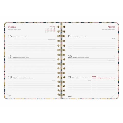 Finocam you պլանավորիչը անձնական և մասնագիտական կազմակերպչական արտադրանք է, որը նախատեսված է 2026 տարվա համար, որը համատեղում է ֆունկցիոնալությունն ու ոճը՝ գործնական և էլեգանտ ձևաչափով: Այն գալիս է մոտավորապես 15.5 x 21.2 սմ չափսերով, որը համարժեք է A5 ձևաչափին, իդեալական է նրանց համար, ովքեր փնտրում են շարժական պլանավորիչ՝ բավարար տարածքով՝ ամենօրյա գործունեությունը մանրամասն պլանավորելու համար: Դրա կրկնակի պարուրաձև կազմը հնարավորություն է տալիս հարմարավետ օգտագործել և հեշտ բացել, մինչդեռ կարծր ստվարաթղթե ծածկը անփայլ, քերծվածքներից պաշտպանված լամինացիայով ապահովում է ամրություն և դիմադրողականություն՝ ավելացնելով նուրբ ավարտ՝ մետաղական դրոշմված մանրամասներով, որոնք այն հաղորդում են թարմ, ժամանակակից տեսք: Պլանավորիչը պատրաստված է 80 գ/մ² քլոր չպարունակող, FSC հավաստագրված թղթից, ապահովելով որակյալ գրություն և շրջակա միջավայրի նկատմամբ պարտավորություն: Ներքին հարդարանքն առանձնանում է մաքուր, մատչելի դիզայնով՝ օրը մեկ էջում դասավորությամբ, որը բավարար տեղ է տրամադրում նախագծերը, առաջադրանքները և հանդիպումները գրանցելու համար՝ հեշտացնելով ամենօրյա կազմակերպումը: Գործնական առանձնահատկություններից են՝ առաձգական փակման ժապավենը և միկրո-անցքավոր անկյունները՝ ընթացիկ ամսաթիվը արագ գտնելու համար, ինչը բարելավում է օգտագործելիությունը: Պլանավորիչը պարունակում է օգտակար տեղեկատվություն անվանական օրերի, ազգային տոների, սեզոնային փոփոխությունների և չինական ու մուսուլմանական նոր տարիների սկզբի վերաբերյալ, ինչը լրացուցիչ արժեք է հաղորդում տարեկան պլանավորմանը: Այն նաև ներառում է թեմատիկ պիտակների հավաքածու, որոնք անձնական և ֆունկցիոնալ հպում են հաղորդում՝ կարևոր իրադարձությունները կամ հատուկ հիշեցումները ընդգծելու համար: Ներքին հարդարանքը իսպաներեն է, ինչը հեշտացնում է դրա օգտագործումը իսպանախոս միջավայրերում: Այս պարուրաձև պլանավորիչը համատեղում է նյութերի, գեղագիտության և ֆունկցիոնալության լավագույն կողմերը՝ դարձնելով այն անփոխարինելի գործիք նրանց համար, ովքեր գնահատում են որակը, գործնականությունը և նուրբ դիզայնը իրենց ամենօրյա կազմակերպման մեջ։