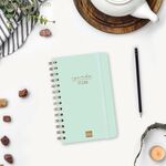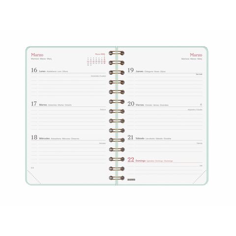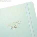 Finocam-ի Alma պլանավորիչը անձնական և մասնագիտական կազմակերպչական գործիք է, որը նախագծված է կոշտ ստվարաթղթե կազմով, մատ հակաքերծվածքային լամինացված ծածկույթով, որն առաջարկում է դիմացկունություն և էլեգանտ տեսք գրավիչ անանուխի գույնով: Դրա մոտավոր 11.7 x 18.1 սմ չափերը այն դարձնում են կոմպակտ և հեշտ տեղափոխելու համար, իդեալական աշխատանքի կամ ամենօրյա գործունեության համար: Այն ունի կրկնակի պարուրաձև կազմ՝ ճկուն էջերի մշակման համար, և գործնական առաձգական ժապավենի փակում՝ այն փակ պահելու և դրա պարունակությունը պաշտպանելու համար: Պլանավորիչը տպագրված է իսպաներեն՝ 80 գ/մ² FSC հավաստագրված, քլոր չպարունակող թղթի վրա, ապահովելով գրելու լավ որակ և շրջակա միջավայրի նկատմամբ պատասխանատվություն: Ներքին դասավորությունը կազմակերպված է հորիզոնական շաբաթվա դիտման ձևաչափով՝ հստակ և արդյունավետ պլանավորման համար, որը ներառում է 2026-ի տասներկու ամիսները: Այն նաև ներառում է ֆունկցիոնալ մանրամասներ, ինչպիսիք են միկրո-անցքավոր անկյունները՝ ընթացիկ շաբաթը արագ գտնելու համար, և թեմատիկ պիտակների հավաքածու՝ կարևոր իրադարձությունները անհատականացնելու և նշելու համար: Ներքին դիզայնը մաքուր և ընդարձակ է, ապահովելով բավարար տեղ նախագծերը, առաջադրանքները և պարտավորությունները նշելու համար, միաժամանակ առաջարկելով ստանդարտացված տարեկան տեղեկատվություն անվանական օրերի, ազգային տոների, սեզոնային փոփոխությունների և անձնական և մասնագիտական կազմակերպման համար այլ օգտակար բովանդակություն: Զուսպ ներկայացման և մետաղական մանրամասների շնորհիվ այս պլանավորիչը գործնական և բազմակողմանի լուծում է այն օգտատերերի համար, ովքեր ցանկանում են արդյունավետորեն կառավարել իրենց բազմաթիվ պարտականությունները ամբողջ տարվա ընթացքում: Ընդհանուր առմամբ, Finocam-ի Alma պլանավորիչը ներկայացնում է ուշադիր մշակված արտադրանք՝ առօրյա կյանքը որակով, ֆունկցիոնալությամբ և ոճով աջակցելու և պարզեցնելու համար։