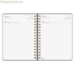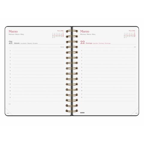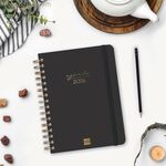 Finocam-ի Alma պլանավորիչը մասնագիտական որակի պլանավորիչ է, որը նախատեսված է անձնական և աշխատանքային կազմակերպումը պարզեցնելու համար 2026 ընթացքում: Այն ունի մոտավորապես 15.5 x 21.2 սմ չափս, որը համապատասխանում է A5-ին, համատեղելով հարմարավետությունն ու փոխադրելիությունը բավարար տարածքով՝ յուրաքանչյուր օրը մանրամասն պլանավորելու համար: Դրա կոշտ կազմը պատրաստված է ստվարաթղթից, որը ծածկված է քերծվածքներից պաշտպանված լամինատով, ապահովելով ամրություն ամենօրյա օգտագործման համար և էլեգանտ ձևավորում՝ մետաղական մանրամասներով, որոնք ավելացնում են նրբագեղ հպում: Պլանավորիչը կազմված է կրկնակի պարույրով, որը թույլ է տալիս այն լիովին բացել, և ներառում է առաձգական ժապավեն՝ էջերը անվտանգ և պաշտպանված պահելու համար: Ներքին դասավորությունը մաքուր և ֆունկցիոնալ է՝ օրը մեկ էջում հաշվարկով, որը բավարար տարածք է տրամադրում հանդիպումները, նախագծերը և առաջադրանքները հստակ և կարգավորված գրելու համար: Այն տպագրված է 80 գ/մ² թղթի վրա, որն ապահովում է օպտիմալ քաշ, որը կանխում է թանաքի արտահոսքը և թույլ է տալիս հարմարավետ գրել: Այն ունի միկրո-ծակոտկեն անկյուններ՝ ընթացիկ օրվան կամ շաբաթվան արագ մուտք գործելու համար, և ներառում է թեմատիկ պիտակների հավաքածու՝ կարևոր ամսաթվերը անհատականացնելու և ընդգծելու համար: Բացի այդ, այն պարունակում է համապատասխան լրացուցիչ բովանդակություն, ինչպիսիք են անվանակոչման օրերը, ազգային տոները, սեզոնային փոփոխությունները և չինական Նոր տարվա սկիզբը, ավելացնելով արժեքավոր տեղեկատվություն տարեկան պլանավորման համար: Օգտագործված թուղթը քլոր չի պարունակում և FSC հավաստագրված է, ապահովելով էկոլոգիապես մաքուր արտադրություն: Այս արտադրանքը ամբողջությամբ իսպաներեն է, նախատեսված է այն օգտատերերի համար, ովքեր փնտրում են բազմակողմանի գործիք, որը կարող է աշխատել և՛ որպես սեղանադիր, և՛ որպես շարժական պլանավորող՝ հարմարվելով տարբեր ամենօրյա կարիքներին: Ընդհանուր առմամբ, Finocam-ի Alma պլանավորիչը բնութագրվում է ֆունկցիոնալության, նյութի որակի և մտածված դիզայնի իր հավասարակշռությամբ, իդեալական է նրանց համար, ովքեր պետք է արդյունավետորեն կառավարեն իրենց ժամանակը ամբողջ տարվա ընթացքում՝ օգտագործելով դիմացկուն և գործնական արտադրանք։