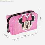 Միննի Մաուսի ճանապարհորդական զուգարանի պայուսակը գործնական աքսեսուար է, որը հատուկ մշակված է երեխաների համար, հարմար է և՛ տղաների, և՛ աղջիկների համար՝ շնորհիվ իր ունիսեքս դիզայնի և բնորոշ վարդագույն գույնի, որը հաղորդում է ուրախ և գրավիչ տեսք: Պատրաստված 100% պոլիուրեթանից (PU)՝ սինթետիկ նյութից, որը համատեղում է թեթևությունը, դիմացկունությունը և հեշտ մաքրվող լինելը, այս զուգարանի պայուսակը իդեալական է անձնական հիգիենայի պարագաները կազմակերպված և անվտանգ կերպով պահելու համար ուղևորությունների կամ զբոսանքների ժամանակ: Դրա մոտավոր չափսերը՝ 17 x 10 x 7 սմ, այն դարձնում են կոմպակտ և կառավարելի իր, որը հեշտացնում է տեղափոխումը մեջքի պայուսակներում կամ ճամպրուկներում՝ առանց չափազանց շատ տեղ զբաղեցնելու: Միննի Մաուսից ոգեշնչված մոտիվներով բազմագույն դիզայնը այն դարձնում է ճանաչելի և գրավիչ երեխաների համար, ինչպես նաև խրախուսում է իրենց իրերը կազմակերպված պահելու սովորությունը: Հիգիենայի պարկի կառուցվածքը ապահովում է ամրություն և պաշտպանություն ցայտքերից կամ թափվածքներից, դարձնելով այն ֆունկցիոնալ և գրավիչ լրացում տնից դուրս հիգիենայի կարիքների համար: Ընդհանուր առմամբ, այս հիգիենայի պարկը համատեղում է որակյալ մշակումը երեխաների համար հարմար տեսքի հետ, դարձնելով այն գործնական ընտրություն նրանց համար, ովքեր փնտրում են հատուկ արտադրանք երեխաների համար ճանապարհորդության կամ կարճատև ուղևորությունների ժամանակ: