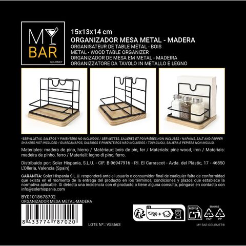 Կազմակերպիչ My Bar շագանակագույն սև փայտե մետաղական 15 x 13 x 14 սմ (12 հատ)