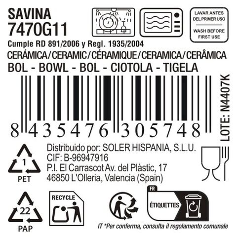 La Mediterránea Savina կապույտ-սպիտակ կերամիկական աման 730 մլ (12 միավոր) լավագույն գնով։