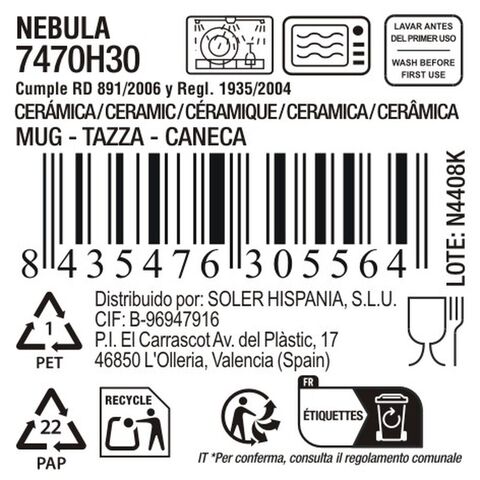 La Mediterránea Nebula Grey բաժակը 310 մլ կերամիկական (18 միավոր) լավագույն գնով։