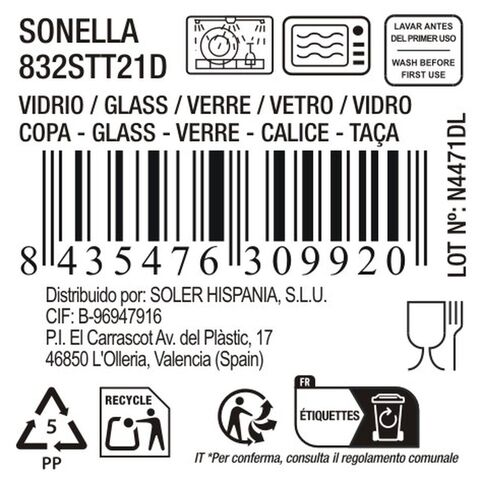 Wineglass La Mediterránea Sonella Transparent Glass 360 մլ (36 միավոր) լավագույն գնով։
