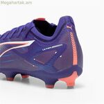 Տղամարդկանց համար նախատեսված Puma Ultra 5 Match Fg/Ag ֆուտբոլային կոշիկները հատուկ մշակված են մեծահասակների մրցակցային ֆուտբոլի համար, որոնք կենտրոնանում են արագության և գնդակի վերահսկողության վրա: Դրանք ունեն մանուշակագույն գույն, որն առաջարկում է յուրահատուկ և ժամանակակից դիզայն, իդեալական է խաղադաշտում աչքի ընկնել ցանկացող խաղացողների համար: Այս կոշիկները ներառում են GripControl տեխնոլոգիան՝ Puma-ի նորարարությունը, որը զգալիորեն բարելավում է գնդակին դիպչելիս կպչունությունը և ճշգրտությունը՝ հեշտացնելով տեխնիկական մանևրները և ավելի ճշգրիտ փոխանցումները: SPEEDSYSTEM ներբանը համատեղում է կոշտ գետնի (FG) և արհեստական խոտածածկի (AG) մակերեսների տարրերը՝ ապահովելով օպտիմալ կպչունություն, որը թույլ է տալիս արագ արագացումներ, ուղղության անվտանգ փոփոխություններ և կայունություն նույնիսկ խառը տեղանքների վրա: Բացի այդ, դրանք ունեն ստանդարտ չափս, որը ապահովում է հարմարավետություն և ոտքի հենարան խաղերի և ինտենսիվ մարզումների ժամանակ լավագույն արդյունքի ժամանակ: Այս առանձնահատկությունները Puma Ultra 5 Match-ը դարձնում են բազմակողմանի, բարձր արդյունավետության կոշիկներ, որոնք հարմար են այն խաղացողների համար, ովքեր պետք է համատեղեն թեթևությունն ու վերահսկողությունը՝ առանց զոհաբերելու հարմարավետությունը կամ դիմացկունությունը: Ընդհանուր առմամբ, այս կոշիկները նախատեսված են ֆուտբոլիստների համար, ովքեր առաջնահերթություն են տալիս ճարպկությանը և գնդակի ճշգրիտ վերահսկողությունին՝ դրանք դասելով որպես ամուր տարբերակ մեծահասակների ֆուտբոլային կոշիկների միջինից բարձր շարքում: