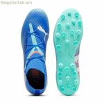 Տղամարդկանց համար նախատեսված Puma Future 7 Pro Mg ֆուտբոլային կոշիկները հատուկ նախագծված են արհեստական խոտածածկով խաղերի համար՝ ապահովելով օպտիմալ կատարողականություն այս մակերեսի վրա: Դրանց կապույտ գույնը հաղորդում է ժամանակակից և յուրօրինակ հպում, որը համապատասխանում է տարբեր ոճերի և սպորտային համազգեստների: Այս կոշիկները առանձնանում են իրենց նորարարական դիզայնով, որը ապահովում է հարմարվողական տեղավորում՝ հասնելով իդեալական հավասարակշռության աջակցության և շարժման ազատության միջև, ինչը կարևոր է ֆուտբոլիստների համար, ովքեր պահանջում են ճարպկություն և ճշգրտություն իրենց շարժումներում: Դրանք ներառում են Puma-ի առաջադեմ տեխնոլոգիաներ, որոնք բարելավում են հարմարավետությունն ու կայունությունը խաղի ընթացքում՝ թույլ տալով գնդակի գերազանց վերահսկողություն և պաշտպանելով ոտքը մշտական լարվածությունից: Դրանց կառուցվածքը նախագծված է թեթևություն և դիմացկունություն ապահովելու համար, որոնք հիմնական գործոններ են արհեստական խոտածածկով մակերեսների վրա ինտենսիվ մարզումների և խաղերի պահանջներին դիմակայելու համար: Future 7 Pro Mg մոդելը մեծահասակների ֆուտբոլային կոշիկների շարքի տեխնիկական և մասնագիտացված տարբերակ է, որը նախատեսված է այն խաղացողների համար, ովքեր գնահատում են հենարանի, ճկունության և որոշակի միջավայրերում կատարողականի միջև հավասարակշռությունը: Ընդհանուր առմամբ, այս կոշիկները բավարարում են ժամանակակից ֆուտբոլի պահանջները՝ ապահովելով հուսալիություն և հարմարվողականություն յուրաքանչյուր խաղում: