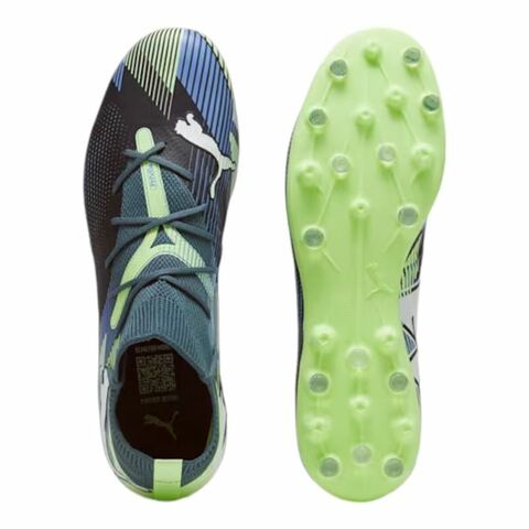 Puma-ի Future 7 Match Mg մեծահասակների ֆուտբոլային կոշիկները կապույտ գույնով նախատեսված են տղամարդ խաղացողների համար, ովքեր փնտրում են արագության և վերահսկողության օպտիմալ համադրություն խաղադաշտում: Դրանք ունեն առաջադեմ Dynamic Motion համակարգ, որը հնարավորություն է տալիս արագ կտրվածքներ և ուղղության ավելի ճշգրիտ փոփոխություններ՝ հեշտացնելով ճկուն մանևրները խաղի ընթացքում: Դրանց թարմացված դիզայնը ապահովում է հարմարավետ և անվտանգ տեղավորում՝ ապահովելով ոտքի պատշաճ հենարան՝ առանց զոհաբերելու դինամիկ կատարման համար անհրաժեշտ շարժման ազատությունը: Այս կոշիկները գալիս են Multi Ground (Mg) ներբանով, որը հատուկ նախագծված է տարբեր խոտածածկ մակերեսների վրա՝ թե՛ բնական, թե՛ արհեստական, բազմակողմանի և արդյունավետ բռնվածք ապահովելու համար՝ ապահովելով կայունություն և կպչունություն տարբեր պայմաններում: Ընտրված նյութերի համադրությունը ապահովում է թեթևություն և դիմացկունություն՝ օպտիմալացնելով խաղացողի արագությանը արձագանքելը և ինտենսիվ օգտագործումից մաշվածության դիմադրությունը: Իրենց կառուցվածքի և տեխնիկական առանձնահատկությունների շնորհիվ դրանք հատկապես հարմար են ֆուտբոլիստների համար, ովքեր կարիք ունեն միջինից մինչև բարձր խաղային պահանջներին համապատասխանող կոշիկների, որոնք հարմարվում են տարբեր ոճերի և մարզումների մակարդակին: Ընդհանուր առմամբ, Future 7 Match Mg-ը հավասարակշռված ընտրություն է նրանց համար, ովքեր գնահատում են տեխնոլոգիան և ֆունկցիոնալ դիզայնը պրոֆեսիոնալ որակի ֆուտբոլային կոշիկներում:
