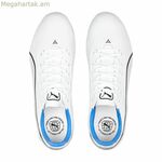 Puma Ultra 5 Match It + Mid մանկական ֆուտբոլային կոշիկները սպորտային կոշիկներ են, որոնք հատուկ մշակված են երիտասարդ խաղացողներին հարմարավետության, տեղավորման և կատարողականության օպտիմալ հավասարակշռություն ապահովելու համար: Ներկայացված նրբագեղ սպիտակ գույնով, այս կոշիկները համատեղում են ֆունկցիոնալությունն ու ոճը՝ հարմարեցված մանկական շուկային, ապահովելով անվտանգ հենարան ինչպես բնական, այնպես էլ արհեստական խոտածածկույթների վրա: Դրանց մարզչական ոճի կառուցվածքն ունի միջին բարձրության օձիք, որը ապահովում է կոճի լրացուցիչ հենարան, բարելավելով կայունությունը՝ առանց շարժումը սահմանափակելու, ինչը իդեալական է ֆուտբոլային մարզումների վաղ շրջանում գտնվող երեխաների համար: Ներբանը ռազմավարականորեն նախագծված է գերազանց բռնվածք ապահովելու համար, խթանելով արագ ուղղության փոփոխությունները և վստահությունը յուրաքանչյուր քայլի հետ, ուղղակիորեն նպաստելով մարզումների և խաղերի ժամանակ կատարողականին: Սպորտային սարքավորումների նորարարության և որակի համար հայտնի Puma-ն այս մոդելում առաջարկում է նյութերի և կառուցվածքի հավասարակշռված համադրություն, որը ապահովում է դիմացկունություն և անատոմիական համապատասխանություն՝ հարմարվելով աճող ոտքերին, նվազագույնի հասցնելով անհարմարությունը և նպաստելով գնդակի վերահսկմանը: Ամփոփելով՝ Ultra 5 Match It + Mid-ը ներկայացնում է տեխնիկական և հարմարավետ լուծում երիտասարդ մարզիկների համար, ովքեր ցանկանում են սկսել կամ բարելավել իրենց խաղը՝ օգտագործելով կոշիկներ, որոնք համապատասխանում են ֆուտբոլի պահանջներին ցանկացած մակերեսի վրա: