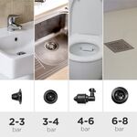 - Չժանգոտվող պողպատից պատրաստված բաք, ներկառուցված ճնշման չափիչ, բարձր ճնշում. թույլ է տալիս կարգավորել ճնշումը՝ ըստ օգտագործման (առաջարկվող ճնշում՝ 2-3 բար լվացարանների համար, 3-4 բար լվացարանների համար, 4-6 բար զուգարանակոնքերի համար և 6-8 բար ցնցուղի սկուտեղների կամ լոգարանների համար): Դրա դիմացկուն չժանգոտվող պողպատից պատրաստված ճնշման բաքն ապահովում է առավելագույն անվտանգություն և դիմացկունություն։