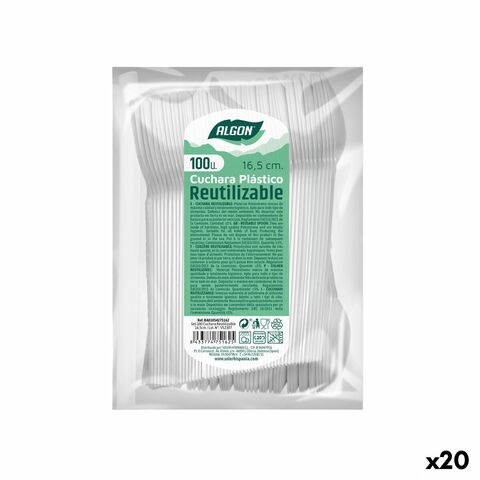 Algon բազմակի օգտագործման սպիտակ գդալների հավաքածու 20 հատ 16,5 սմ լավագույն գնով։