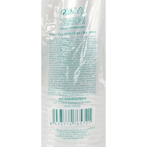 Բազմակի օգտագործման բաժակների հավաքածու Algon Plastic Transparent 12 հատ 500 մլ (18 միավոր) լավագույն գնով։