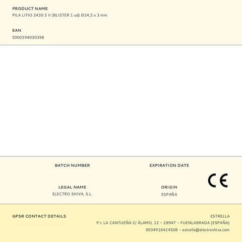 Duracell CR2430 3V: Մարտկոցի տեխնոլոգիա՝ լիթիումային, Մարտկոցի ձևաչափ՝ կոճակ/մետաղադրամ, Մարտկոցի լարում՝ 3 Վ