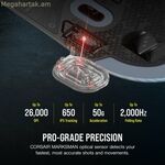 Corsair M75 RGB-ը անլար օպտիկական մկնիկ է, որը նախատեսված է խաղերի և ինտենսիվ օգտագործման միջավայրերում օպտիմալ աշխատանք ապահովելու համար։ Այս սարքն ունի երկկողմանի դիզայն, որը հարմարավետորեն համապատասխանում է և՛ աջլիկ, և՛ ձախլիկ օգտատերերին՝ ապահովելով էրգոնոմիկ փորձառություն՝ անկախ գերիշխող ձեռքից։ Դրա սև ծածկույթը հաղորդում է նրբագեղ, պրոֆեսիոնալ տեսք, մինչդեռ հարմարեցվող RGB լուսավորությունը ավելացնում է ոճային և յուրահատուկ հպում։ Այն առաջարկում է կապ անլար RF տեխնոլոգիայի միջոցով՝ ապահովելով կայուն, ցածր լատենտությամբ կապ, որը իդեալական է այն խաղերի համար, որտեղ ճշգրտությունն ու արագ արձագանքը գլխավորն են։ Ներկառուցված առաջադեմ օպտիկական սենսորը հասնում է մինչև 26,000 DPI լուծաչափի, ապահովելով ճշգրիտ և կարգավորելի հետևում, որը հարմար է տարբեր խաղային ոճերի և առաջադրանքների համար՝ սկսած կրակոցների ճշգրիտ շարժումներից մինչև ընդհանուր նավիգացիա: Բացի Windows-ի և Mac OS-ի հետ համատեղելիությունից, այս մկնիկը ներառում է բաղադրիչներ և գործառույթներ, որոնք ապահովում են դիմացկունություն և սահուն օգտագործում՝ կոճակներով և արագ, հուսալի արձագանքի համար նախատեսված պտտվող անիվով: Ամփոփելով՝ Corsair M75 RGB-ը բազմակողմանի և հզոր ընտրություն է այն օգտատերերի համար, ովքեր փնտրում են բարձր արդյունավետությամբ անլար մկնիկ՝ պրոֆեսիոնալ ճշգրտությամբ և երկարատև օգտագործման համար հարմարվողական դիզայնով։