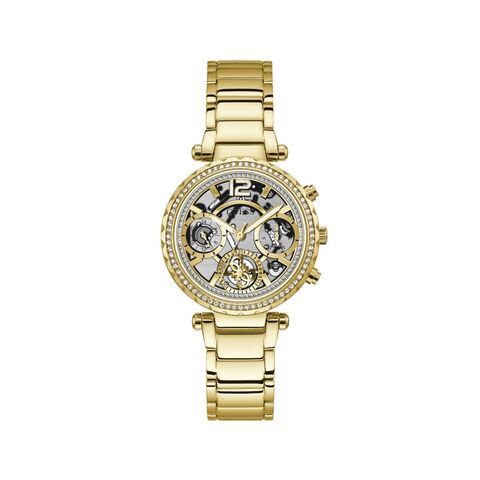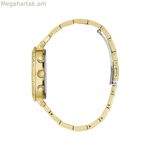 Guess-ի GW0403L2 կանացի ժամացույցը նրբագեղ ձեռքի ժամացույց է, որը նախատեսված է նրանց համար, ովքեր գնահատում են ժամանակակից ոճի և դիմացկուն նյութերի համադրությունը։ Այն առանձնանում է իր ոսկեգույն գույնով, որը հաղորդում է նրբագեղ և բազմակողմանի հպում, իդեալական է ինչպես պաշտոնական առիթների, այնպես էլ առօրյա կրելու համար։ Այս մոդելն ունի անալոգային էկրան դասական ժամանակի ընթերցման համար և աշխատում է ճշգրիտ քվարցային մեխանիզմով, որը հայտնի է իր հուսալիությամբ և քիչ խնամքով։ Ե՛վ ժապավենը, և՛ պատյանը պատրաստված են չժանգոտվող պողպատից, որը բարձր կոռոզիոն դիմացկուն նյութ է, որը ապահովում է երկարատև օգտագործում և պահպանում է իր փայլը ամենօրյա կրելու ժամանակ։ Բացի այդ, դիզայնը ներառում է ջրակայունություն, ապահովելով պաշտպանություն ցայտքերի և առօրյա իրավիճակներից՝ կարևոր հատկանիշ ակտիվ կենսակերպ վարողների համար։ Չինաստանում Guess-ի որակի չափանիշներին համապատասխան արտադրված այս ձեռքի ժամացույցը մարմնավորում է ապրանքանիշի բնորոշ գեղագիտությունը՝ հավասարակշռելով ֆունկցիոնալությունը և տեսողական գրավչությունը: Իր առանձնահատկությունների և նուրբ ձևավորման համադրությամբ GW0403L2-ը առանձնանում է որպես հուսալի և աչքի ընկնող ընտրություն կանացի նորաձև ժամացույցների հատվածում: