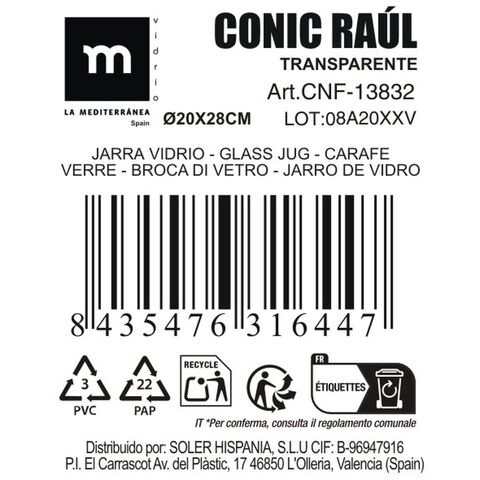 Եթե ցանկանում եք ձեր տանը ավելացնել ինքնատիպության շունչ, դա կարող եք անել Vase La Mediterránea CONIC RAUL Transparent Glass 20 x 28 սմ-ով։