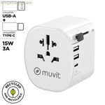 Muvit For Change MCADP0006 ունիվերսալ պատի լիցքավորիչը աքսեսուար է, որը նախատեսված է բազմաթիվ սարքերի համար բազմակողմանի և արդյունավետ լիցքավորման լուծում ապահովելու համար: Իր զուսպ և ֆունկցիոնալ սպիտակ դիզայնով, այս լիցքավորիչը ապահովում է առավելագույն 15 W հզորություն, ապահովելով սմարթֆոնների, պլանշետների և այլ համատեղելի սարքերի արագ և անվտանգ լիցքավորում: Այն ներառում է ունիվերսալ վարդակ, որը թույլ է տալիս օգտագործել տարբեր տեսակի միակցիչներով՝ վերացնելով լրացուցիչ ադապտերների անհրաժեշտությունը: Բացի այդ, այն ունի գործնական և թարմացված միակցիչի կոնֆիգուրացիա՝ 1 USB Type-C միակցիչ և 2 USB-A միակցիչներ, որոնք թույլ են տալիս միաժամանակ լիցքավորել բազմաթիվ սարքեր՝ օպտիմալացնելով լիցքավորումը տանը կամ գրասենյակում: USB Type-C միացքի առկայությունը համատեղելիություն է ապահովում ամենաժամանակակից սարքերի հետ՝ ապահովելով ավելի արդյունավետ և կայուն էներգիայի փոխանցում՝ ժամանակակից կապի կարիքները բավարարելու համար: Դրա կոմպակտ չափսը և ամուր դիզայնը հեշտացնում են տեղափոխումը և դիմացկուն են դարձնում այն ամենօրյա օգտագործման համար: Այս լիցքավորիչը հավասարակշռված տարբերակ է այն օգտատերերի համար, ովքեր փնտրում են հուսալի սարք, որը համատեղելի է սարքերի լայն շրջանակի հետ և կարող է առանց բարդությունների բավարարել ստանդարտ էներգիայի պահանջները: Ամփոփելով՝ Muvit For Change MCADP0006-ը համատեղում է ֆունկցիոնալությունը, համատեղելիությունը և ունիվերսալ դիզայնը՝ ցանկացած միջավայրում լիցքավորման հիմնական կարիքները բավարարելու համար։