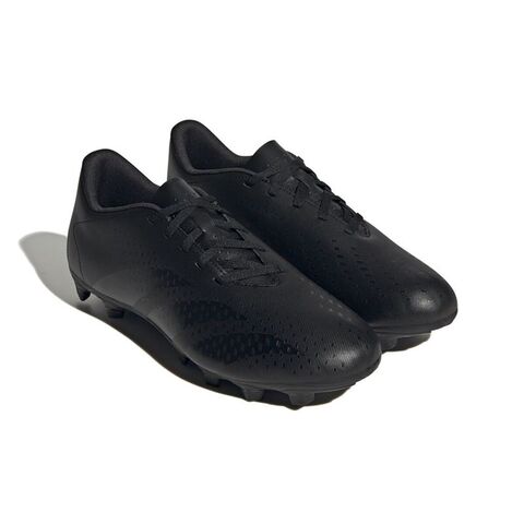 Մեծահասակների համար նախատեսված Adidas Predator Accuracy.4 FxG ֆուտբոլային կոշիկները հատուկ նախագծված են բնական խոտածածկի կամ խառը հատիկավոր արհեստական խոտածածկի (FxG) վրա հավասարակշռված արդյունքներ ապահովելու համար: Դրանց սև գույնը առաջարկում է զուսպ և բազմակողմանի ոճ, որը հարմար է ցանկացած հանդերձանքի համար: Դրանք ունեն ժանյակավոր ամրակման համակարգ, որն ապահովում է անվտանգ, անհատականացված տեղավորում, մինչդեռ վերին մասը պատրաստված է դիմացկուն սինթետիկ նյութերից՝ ապահովելով երկարակեցություն և թեթևություն: Դիզայնը նպատակ ունի ապահովել հարմարավետ դասական տեղավորում՝ բարելավելով կայունությունը և վերահսկողությունը խաղադաշտում: FxG ներբանները նախագծված են խառը մակերեսների վրա կպչունությունը օպտիմալացնելու համար՝ թույլ տալով լավ բռնվածք և ճկուն շարժունակություն, որը բարելավում է արձագանքը շարժումների և ուղղության փոփոխությունների ժամանակ: Այս մեծահասակների ֆուտբոլային կոշիկները գործնական և ֆունկցիոնալ ընտրություն են այն խաղացողների համար, ովքեր փնտրում են հուսալի սպորտային կոշիկներ հաճախակի խաղերի և մարզումների համար, համատեղելով տեխնիկական կատարողականությունը Adidas ապրանքանիշի հայտնի որակի հետ: Դրանք հարմար են նրանց համար, ովքեր իրենց սպորտային հանդերձանքում պահանջում են հարմարավետության, ֆունկցիոնալության և դիմացկունության հավասարակշռություն: