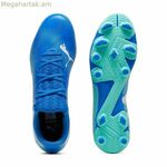 Կապույտ գույնի Puma Future 7 Play FG/AG մեծահասակների ֆուտբոլային կոշիկները հատուկ նախագծված են տղամարդկանց համար՝ առաջարկելով հարմարավետության, վերահսկողության և խաղադաշտում արդյունավետության հավասարակշռություն: Այս կոշիկները ունեն FUZIONFIT+ վերին մաս, որը տեխնոլոգիա է, որն ապահովում է դինամիկ և հարմարվողական տեղավորում՝ ապահովելով ինչպես աջակցություն, այնպես էլ շարժման ազատություն: Դրանք նաև ունեն ռազմավարականորեն մշակված մակերեսներ՝ գնդակի վերահսկողությունը բարելավելու համար, ինչը թույլ է տալիս ավելի մեծ ճշգրտություն փոխանցումների և նետումների ժամանակ: Դրանց կրունկի լցոնումը ապահովում է լրացուցիչ բարձիկ և պաշտպանություն՝ նվազագույնի հասցնելով հարվածները վազքերի և ուղղության կտրուկ փոփոխությունների ժամանակ: Ներբանը հատուկ նախագծված է բնական և արհեստական խոտածածկի (FG/AG) համար, ամրակներով, որոնք ապահովում են օպտիմալ կպչունություն՝ առանց հետքեր թողնելու, ինչը բարձր է գնահատվում ժամանակակից կանոնակարգային դաշտերում: Puma-ն այս կոշիկների արտադրության մեջ օգտագործել է նաև վերամշակված նյութեր, ինչը արտացոլում է կայունության նկատմամբ իր հանձնառությունը՝ առանց որակի կամ դիմացկունության վրա զիջումների գնալու: Այս մոդելը համատեղում է տեխնոլոգիական նորարարությունը և անհրաժեշտ ֆունկցիոնալությունը յուրաքանչյուր խաղում հուսալի կատարողականություն փնտրող խաղացողների համար: Ընդհանուր առմամբ, Future 7 Play FG/AG-ն ներկայացնում է տեխնիկական և կայուն ընտրություն այն ֆուտբոլիստների համար, ովքեր իրենց կոշիկներից պահանջում են ճշգրտություն, հարմարավետություն և հարմարվողականություն: