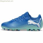 Մանկական Puma Future 7 Play MG ֆուտբոլային կոշիկները հատուկ երեխաների համար նախատեսված սպորտային կոշիկներ են, որոնք առանձնանում են գրավիչ կապույտ գույնով, որը համատեղում է ոճը և ֆունկցիոնալությունը: Այս կոշիկները նախատեսված են արհեստական խոտածածկի և բազմագոտիների վրա օպտիմալ արդյունավետություն ապահովելու համար, շնորհիվ իրենց ներբանի, որը հագեցած է բազմագետնի (MG) ամրակներով, որոնք ապահովում են բազմակողմանի և կայուն բռնվածք տարբեր տեսակի դաշտերում, բարելավելով շարժունակությունը և գնդակի վերահսկողությունը խաղի ընթացքում: Դրանց կառուցվածքը ապահովում է հարմարավետություն և դիմացկունություն, որոնք անհրաժեշտ հատկանիշներ են վաղ տարիքում շարունակական սպորտային մարզումների համար: Բացի այդ, դիզայնը ներառում է նյութեր և տեխնոլոգիաներ, որոնք ապահովում են թեթևություն և երկարատև կրում՝ հարմարվելով երեխայի անատոմիային՝ նպաստելով ոտքի ճիշտ տեղադրմանը և կանխելով անհարմարությունը: Սպորտային հանդերձանքի ոլորտում նորարարությունների նկատմամբ իր նվիրվածությամբ հայտնի Puma-ն Future 7 Play MG մոդելով երաշխավորում է կատարողականի և պաշտպանության միջև ճիշտ հավասարակշռություն, ինչը այս կոշիկները դարձնում է հուսալի ընտրություն երիտասարդ ֆուտբոլիստների համար, ովքեր փնտրում են մասնագիտացված և հարմարավետ կոշիկներ: Ընդհանուր առմամբ, այս մանկական ֆուտբոլային կոշիկները համատեղում են որակը, ֆունկցիոնալությունը և ոճը, ինչը դրանք դարձնում է իդեալական կոշիկ տարբեր սպորտային մակերեսների վրա ֆուտբոլ խաղացողների համար: