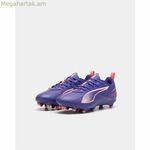 Puma Ultra 5 Play FG/AG մանկական ֆուտբոլային կոշիկները հատուկ նախագծված են կոշտ և արհեստական մակերեսների վրա օպտիմալ արդյունքներ ապահովելու համար՝ հարմարեցված երիտասարդ խաղացողների կարիքներին: Այս մոդելը գալիս է գրավիչ մանուշակագույն գույնով և պատկանում է ֆուտբոլի համար մասնագիտացված սպորտային կոշիկների կատեգորիային, համատեղելով բազմակողմանիությունը երեխաների համար նախատեսված բարձրակարգ կոշիկների տեխնիկական առանձնահատկությունների հետ: Պատրաստված թեթև և դիմացկուն նյութերից, դրանք ապահովում են գերազանց ձգողականություն և կայունություն՝ շնորհիվ իրենց FG/AG ներբանի (ամուր հիմք/արհեստական մակերես), որը ապահովում է կպչունություն կոմպակտ բնական խոտածածկի և արհեստական խոտածածկի վրա՝ թույլ տալով ճշգրիտ վերահսկողություն և ճկուն շարժումներ խաղի ընթացքում: Դրանց տեղավորումը, որը հարմարեցված է երեխայի ոտքին, ապահովում է հարմարավետ կարգավորում՝ կանխելով անհարմարությունը և բարձրացնելով հարմարավետությունը մարզումների և խաղերի ժամանակ: Բացի այդ, Puma Ultra 5 Play FG/AG կոշիկների կառուցվածքն ու դիզայնը հավասարակշռության պաշտպանություն և ճկունություն են ապահովում՝ առանց աջակցությունը զոհաբերելու, ինչը կարևոր է աճող մարզիկների համար: Այս կոշիկները նպաստում են փոքրիկների անվտանգ և արդյունավետ մարզական փորձառությանը՝ շնորհիվ ֆունկցիոնալության և դիմացկունության վրա կենտրոնացած կառուցվածքի և դիզայնի: Ամփոփելով՝ Puma Ultra 5 Play FG/AG մանկական կոշիկները տեխնիկական և հուսալի ընտրություն են երիտասարդ ֆուտբոլիստների համար, ովքեր կարիք ունեն հատուկ կոշիկների՝ կոշտ և սինթետիկ հիմքերի վրա լավ հանդես գալու համար: