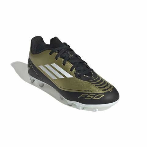adidas F50 Club Messi ֆուտբոլային կոշիկները հատուկ նախագծված են երեխաների համար, համատեղելով ֆունկցիոնալությունը ոճի հետ՝ առաջարկելով իդեալական սպորտային կոշիկներ ինչպես սկսնակների, այնպես էլ զարգացող խաղացողների համար: Այս մանկական ֆուտբոլային կոշիկները ունեն սինթետիկ վերին մաս, որը ապահովում է օպտիմալ հենարան և հարմարավետություն խաղի ընթացքում՝ նպաստելով գնդակի լավ վերահսկողությունին: Դրանց սպիտակ և ոսկեգույն դիզայնը ապահովում է նրբագեղ, ժամանակակից ավարտ, որը ոգեշնչված է Adidas-ի հեղինակավոր Messi շարքից, որը հայտնի է իր սպորտային որակներով: Այս կոշիկների ներբանը բազմակողմանի է, հարմար է բոլոր տեսակի մակերեսների համար՝ բնական խոտածածկից մինչև սինթետիկ դաշտեր, ապահովելով պատշաճ կպչունություն և կայունություն տարբեր խաղային պայմաններում: Բացի այդ, դրանց սպորտային կոշիկների կառուցվածքը ապահովում է անատոմիական և ճկուն տեղավորում՝ խթանելով երիտասարդական ֆուտբոլին բնորոշ արագ և ճկուն շարժումները: Ամփոփելով՝ adidas F50 Club Messi մանկական խաղակոշիկները համատեղում են ճանաչված ապրանքանիշի հեղինակությունը ուշադիր մշակված տեխնիկական հատկանիշների հետ՝ ապահովելով հուսալի և հարմարավետ արտադրանք, որը կատարելապես հարմարեցված է երիտասարդ ֆուտբոլիստների կատարողականին և կարիքներին։