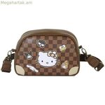 Hello Kitty-ի շագանակագույն մարմնի վրա դրվող պայուսակը նախատեսված է գործնականություն և յուրահատուկ ոճ առաջարկելու համար, իդեալական է նրանց համար, ովքեր փնտրում են ֆունկցիոնալ աքսեսուար՝ խաղային, երիտասարդական հպումով։ Պատրաստված PVC արտաքինից և պոլիեսթերային ծածկույթից, այս պայուսակը ապահովում է ամրություն ամենօրյա օգտագործման համար և հեշտ մաքրում՝ անհրաժեշտ հատկանիշներ աղջիկների, դեռահասների կամ նույնիսկ պաշտամունքային կերպարի չափահաս երկրպագուների ամենօրյա գործունեությանը ուղեկցելու համար։ Դրա մոտավորապես 14 x 23 x 9 սմ կոմպակտ չափսերը բավարար տարածք են ապահովում անհրաժեշտ իրեր, ինչպիսիք են դրամապանակը, հեռախոսը և փոքր աքսեսուարները, տեղափոխելու համար՝ պահպանելով փոխադրելիությունը՝ առանց տարողունակությունը զոհաբերելու։ կայծակաճարմանդ-ը ամրացնում է պայուսակի պարունակությունը և թույլ է տալիս արագ մուտք գործել դրան, մինչդեռ խաչաձև ամրակը թույլ է տալիս հարմարավետորեն կրել այն մարմնի վրայով կամ ուսին՝ հարմարվելով տարբեր իրավիճակներին և քաղաքային կենսակերպին: Դիզայնը ներառում է դասական Hello Kitty մոտիվներ, որոնք ավելացնում են ուրախ և ճանաչելի հպում, որը դուր է գալիս երեք տարեկանից բարձր երեխաներին, ինչպես նաև հավաքորդներին կամ ապրանքանիշերի սիրահարներին: Այս խաչաձև պայուսակը գործնական, դիմացկուն և ոճային ընտրություն է՝ կատարյալ ցանկացած առօրյա հանդերձանքը լրացնելու և առօրյա կյանքին զվարճալի, ֆունկցիոնալ շեշտադրում ավելացնելու համար: