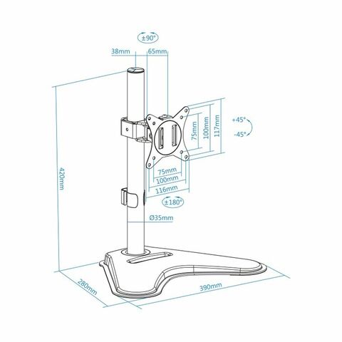 TooQ հեռուստացույցի ամրակը DB1701TN-B սեղանի համար նախատեսված ամրակ է, որը նախատեսված է էկրանները տանը կամ մասնագիտական միջավայրում տեղադրելու գործնական և կայուն լուծում ապահովելու համար։ Այն ունի սև ծածկույթ, որն առաջարկում է գաղտնիություն և հեշտությամբ համադրվում է ցանկացած կահույքի ոճի կամ դեկորի հետ։ Այս սեղանի էկրանի ամրակը ապահովում է ամուր հիմք, որը կանխում է թրթռումները կամ անցանկալի շարժումները, իդեալական է այն հեռուստացույցների կամ մոնիտորների համար, որոնք պահանջում են ֆիքսված դիրքավորում սեղանների, սեղանների կամ մասնագիտացված կահույքի վրա։ Դրա ամուր և կոմպակտ կառուցվածքը թույլ է տալիս տեղադրում առանց բարդ հավաքման, օպտիմալացնելով առկա տարածքը և նպաստելով էկրանի հարմարավետ, էրգոնոմիկ տեսքին։ Դիզայնը կենտրոնանում է կայունության և անվտանգության վրա՝ ապահովելով, որ սարքը մնա անվտանգ տեղում շարունակական օգտագործման ընթացքում։ Այս մոդելը ներկայացնում է գործնական և ֆունկցիոնալ տարբերակ, որը բավարարում է հեռուստացույցի կամ մոնիտորի հենակների ընդհանուր պահանջները՝ համատեղելով գեղագիտությունն ու դիմացկունությունը հարմարվողական ձևաչափով։ Ընդհանուր առմամբ, TooQ հեռուստացույցի տակդիր DB1701TN-B-ն հուսալի ընտրություն է նրանց համար, ովքեր փնտրում են որակյալ սեղանի էկրանի ամրակ՝ չեզոք, ֆունկցիոնալ դիզայնով։