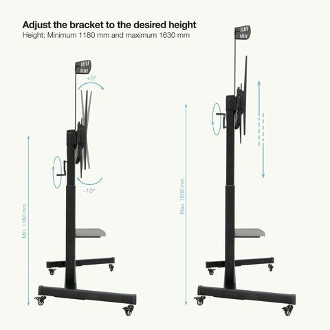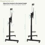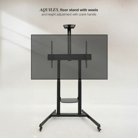 TooQ FS20406HM-B հատակի հենակը ամուր և բազմակողմանի լուծում է, որը նախատեսված է մեծ ֆորմատի էկրանների տեղադրումը հեշտացնելու համար։ Այս հենակը համատեղելի է 60"-ից 100" էկրանների հետ, դիմակայում է առավելագույնը 120 կգ քաշ, ինչը այն դարձնում է իդեալական թե՛ հարթ, թե՛ կոր մոնիտորների համար։ Պատրաստված լինելով բարձրորակ չժանգոտվող պողպատից, այն ապահովում է բարձր ամրություն և դիմացկունություն, ինչը կարևոր է ծանր աուդիովիզուալ սարքավորումները պահելու համար։ Դրա դիզայնը ներառում է բարձրության հեռադիտակային կարգավորում՝ 1180-ից մինչև 1630 մմ միջակայքում, որը թույլ է տալիս էկրանի դիրքը հարմարվել տարբեր տարածքներին և կարիքներին, գումարած՝ +5°/-10° կարգավորելի թեքության անկյուն՝ դիտման անկյունը բարելավելու համար: Այն ունի երկու սկուտեղ՝ ստորինը՝ 410x340 մմ՝ նվագարկիչների կամ DVD-ների համար, և վերինը՝ 285x150 մմ՝ վեբ տեսախցիկների կամ այլ պարագաների համար, որոնցից յուրաքանչյուրը կարող է կրել մինչև 5 կգ քաշ և կարգավորելի է մինչև 2303 մմ բարձրություն՝ վերին սկուտեղի միջոցով: Այս սկուտեղն ունի անիվներ՝ ամրակման համակարգով, որը նպաստում է շարժունակությանը և կայունությանը, իսկ անիվների բազան՝ 1177x740 մմ, իդեալական է անվտանգ և հարմարվողական դիրքի համար մասնագիտական կամ տնային միջավայրերում: Բացի այդ, այն աջակցում է VESA համատեղելիությունը 200x200-ից մինչև 1000x600 մմ՝ ընդգրկելով էկրանների լայն տեսականի կոնֆիգուրացիաներ և մոդելներ: Հավաքածուն ներառում է ամբողջական տեղադրման հավաքածու՝ գործիքներով և տեղադրման ձեռնարկ՝ հեշտ և անվտանգ տեղադրման համար: Ընդհանուր առմամբ, TooQ FS20406HM-B-ը հենարան է, որը համատեղում է ֆունկցիոնալությունը, ամրությունը և բազմակողմանիությունը, հարմար է նրանց համար, ովքեր կարիք ունեն կայուն և կարգավորելի հենարանի մեծ էկրանների համար կորպորատիվ, կրթական կամ աուդիովիզուալ ժամանցի միջավայրերում: