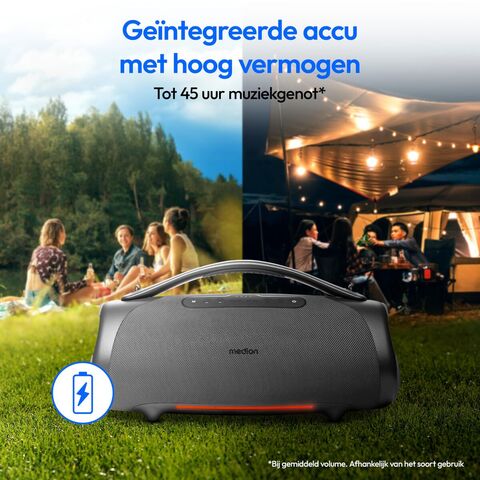 Medion դյուրակիր Bluetooth բարձրախոսը առանձնանում է հզորության և դիմացկունության համադրությամբ բազմակողմանի դիզայնի մեջ, որը նպատակ ունի ապահովել բարձրորակ ձայնային փորձառություն ճանապարհին: 100W RMS ելքային հզորությամբ այն ապահովում է պարզ և հզոր ձայն, իդեալական է ինչպես բացօթյա, այնպես էլ փակ տարածքներում օգտագործման համար: Դրա Bluetooth միացումը թույլ է տալիս անլար կապ հաստատել սարքերի լայն շրջանակի հետ՝ հնարավորություն տալով հեշտությամբ, առանց մալուխի երաժշտություն նվագարկել: Բացի այդ, այն առաջարկում է մինչև 30 ժամ մարտկոցի աշխատանք, ապահովելով երկար լսողական սեանսներ առանց հաճախակի լիցքավորման՝ կարևոր հատկանիշ այն օգտատերերի համար, ովքեր կարիք ունեն աուդիո սարքերի երկարատև օգտագործման: Դրա IPX7 վարկանիշը երաշխավորում է ջրակայունություն, թույլ տալով անվտանգ օգտագործում լողավազանների մոտ կամ անբարենպաստ եղանակային պայմաններում, այդպիսով բարձրացնելով դիմացկունությունը և գործնականությունը բացօթյա գործունեության համար: Այս բարձրախոսն ունի նաև RGB լուսավորություն, որը ավելացնում է դինամիկ և հարմարեցվող տեսողական էֆեկտ, որը լրացնում է աուդիո փորձառությունը ժամանակակից, գրավիչ գեղագիտությամբ: Այս առանձնահատկությունների համադրությունը Medion-ը դարձնում է ամուր և ֆունկցիոնալ սարք, որը հարմար է նրանց համար, ովքեր փնտրում են հուսալի, հզոր դյուրակիր բարձրախոս՝ տարբեր միջավայրերին հարմարեցված հնարավորություններով: Ամփոփելով՝ այն հավասարակշռված ընտրություն է այն օգտատերերի համար, ովքեր գնահատում են ձայնի որակը, մարտկոցի երկար աշխատանքը և դիմադրողականությունը՝ ցանկացած գործունեությանը ուղեկցելու համար:
