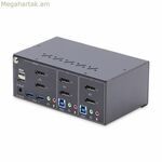 Startech P2DD46A2-KVM-SWITCH-ը բարձր արդյունավետությամբ KVM անջատիչ է, որը նախատեսված է ստեղնաշարի, մկնիկի, USB հանգույցի և երկու DisplayPort մոնիտորների արդյունավետ համատեղ օգտագործման համար երկու համակարգիչների միջև՝ USB-A և DisplayPort միացումներով: Դրա հիմնական առավելությունը երկու միաժամանակյա 4K Ultra HD էկրանների աջակցությունն է 60 Հց հաճախականությամբ DisplayPort 1.2-ի միջոցով, ապահովելով բացառիկ պատկերի որակ պահանջկոտ գրաֆիկական կամ աուդիովիզուալ միջավայրերի համար: Հագեցած երկու USB 3.2 Gen 1 միացքներով, որոնք ապահովում են տվյալների փոխանցման մինչև 5 Գբ/վ արագություն, այն թույլ է տալիս արագ միացնել ծայրամասային սարքերը, մինչդեռ երկու USB 2.0 HID միացքները նախատեսված են բացառապես ստեղնաշարի և մկնիկի համար՝ օպտիմալացված կառավարման փորձի համար: USB էմուլյացիա տեխնոլոգիան հնարավորություն է տալիս արագ փոխարկում համակարգիչների միջև՝ ապահովելով համատեղելիություն ստեղնաշարերի և մկնիկների հետ, այդ թվում՝ լրացուցիչ ստեղներով կամ հատուկ գործառույթներով սարքերի հետ։ Բացի այդ, սարքը պաշտպանված է մինչև 8 կՎ օդային և 6 կՎ կոնտակտային էլեկտրաստատիկ լիցքաթափումներից (ESD), երաշխավորելով ամրություն և կայունություն էլեկտրական միջամտության դեմ։ Տարբեր կարիքներին համապատասխանելու համար այս KVM անջատիչը ներառում է փոխարկման տարբերակներ ֆիզիկական կոճակների կամ ստեղների միջոցով, որոնք թույլ են տալիս անկախ փոխարկում տեսանյութի, USB-ի և աուդիոյի, ձայնային հաստատմամբ և LED կարգավիճակի ցուցիչներով՝ հեշտացնելով օգտագործումը բազմախնդրային միջավայրերում։ Դրա սև գույնի դիզայնը և աջակցվող մալուխի առավելագույն երկարությունը՝ 7.5 մետր, ապահովում են տեղադրման ճկունություն։ Այն աշխատում է 12 Վ հաստատուն հոսանքի աղբյուրով և ունի RoHS հավաստագրեր, որոնք հաստատում են դրա որակը և շրջակա միջավայրի համապատասխանությունը։ Որպես լրացուցիչ արժեք, այն համատեղելի է StarTech.com Connectivity Tools ծրագրային փաթեթի հետ, որը թույլ է տալիս հարմարեցնել Windows-ի առաջադեմ կարգավորումները, վերահսկել USB իրադարձությունները կամ կառավարել ցանցային անվտանգությունը հատուկ կոմունալ ծառայությունների միջոցով, այդպիսով բարելավելով ֆունկցիոնալությունը և միացված սարքերի կառավարումը։ Ամփոփելով՝ StarTech-ի այս 2-միացք DisplayPort KVM անջատիչը հուսալի և բազմակողմանի լուծում է այն մասնագետների համար, որոնք պահանջում են արագ և հուսալի անցում երկու համակարգերի միջև՝ կրկնակի 4K մոնիտորների աջակցությամբ և առաջադեմ USB միացումով։