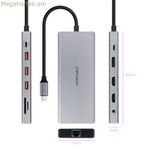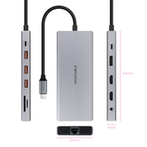 NANOCABLE USB Hub-ը բազմակողմանի լուծում է, որը նախատեսված է USB-C միացքներով սարքերի միացման հնարավորությունները ընդլայնելու համար: Այս բազմաֆունկցիոնալ սարքը ինտեգրում է բազմաթիվ միացքներ՝ ներառյալ երեք USB-A միացք և լրացուցիչ USB-C միացք լիցքավորման համար, թույլ տալով միաժամանակ միացնել ծայրամասային սարքեր, ինչպիսիք են ստեղնաշարերը, մկները և պահեստային կրիչները՝ USB 3.2 ստանդարտի աջակցությամբ, ապահովելով արագ և արդյունավետ տվյալների փոխանցում: Այն նաև ներառում է երկու HDMI ելք և DisplayPort (DP) միացում, որը հնարավորություն է տալիս միանալ տարբեր էկրանների կամ մոնիտորների՝ բարձր թույլտվությամբ, իդեալական է մասնագիտական կամ զվարճանքի միջավայրերի համար, որոնք պահանջում են բազմաթիվ զուգահեռ էկրաններ: RJ45 Ethernet LAN միացքի առկայությունը ապահովում է կայուն, բարձր արագությամբ լարային ինտերնետ կապ՝ խուսափելով Wi-Fi-ի միջամտությունից կամ սահմանափակումներից, ինչը կարևոր առանձնահատկություն է պահանջկոտ օգտատերերի կամ անվտանգ ցանցերով աշխատողների համար: Այն նաև ունի հիշողության քարտերի համար նախատեսված անցքեր՝ և՛ microSD (TF), և՛ SD, որոնք հեշտացնում են մուլտիմեդիա բովանդակության մուտքը և փոխանցումը տեսախցիկներից կամ դյուրակիր սարքերից: Կապը լրացնելու համար այն ներառում է 3.5 մմ աուդիո միացք, որը թույլ է տալիս ուղղակիորեն միանալ արտաքին ձայնային սարքերին, ինչպիսիք են ականջակալները կամ բարձրախոսները: Դրա մոխրագույն ծածկույթը առաջարկում է զգույշ և պրոֆեսիոնալ դիզայն, մինչդեռ դրա հզորությունը ապահովում է մինչև 100 Վտ՝ ապահովելով բավարար հզորություն միացված սարքերը լիցքավորելու և կայուն աշխատանքը պահպանելու համար: Կենտրոնը լարային է, ինչը երաշխավորում է հուսալի, առանց լատենտության կապ: Ընդհանուր առմամբ, այն ամբողջական և ճկուն լրասարք է այն օգտատերերի համար, ովքեր պահանջում են մի քանի կապի տարբերակներ մեկ կոմպակտ և արդյունավետ սարքում: Իդեալական արտադրանք՝ նոութբուքերի կամ USB-C միացքներով սարքավորումների կապը ընդլայնելու և օպտիմալացնելու համար։
