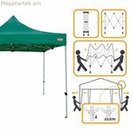 Ակտիվ ծալովի gazebo-ն բազմակողմանի և ֆունկցիոնալ լուծում է նրանց համար, ովքեր կարիք ունեն պաշտպանված բացօթյա տարածքի, լինի դա այգիներում, բակերում, թե միջոցառումների ժամանակ: Մոտավոր 300 x 300 x 220 սմ չափսերով այն ապահովում է մեծ տարածք՝ տարերքներից պաշտպանվելու կամ հարմարավետ, ստվերոտ միջավայր ստեղծելու համար: Այս gazebo-ն առանձնանում է իր ամուր շրջանակով՝ պատրաստված ամուր պողպատից, որը ապահովում է կայունություն և երկարակեցություն տարբեր պայմաններում, մինչդեռ դրա ծածկը պատրաստված է բարձրորակ նյութերից, ինչպիսիք են 420d Oxford պոլիեսթերը և PVC-ը, որոնք ապահովում են արդյունավետ պաշտպանություն արևից և անձրևից: Դրա կանաչ գույնը բնական և աննկատելի հպում է հաղորդում, իդեալական է կանաչ տարածքների կամ այգու տեռասների հետ ներդաշնակորեն ինտեգրվելու համար: Բացի այդ, բարձրությունը կարգավորելի է, ինչը թույլ է տալիս տաղավարը հարմարեցնել յուրաքանչյուր առիթի կոնկրետ կարիքներին՝ մեծացնելով դրա գործնական օգտագործումը: Այս նյութերի համադրությունը ապահովում է գերազանց մաշվածության դիմադրություն և մաքրման ու սպասարկման հեշտություն: Իր ծալովի դիզայնի շնորհիվ այս Aktive տաղավարը հեշտ է տեղադրել և ապամոնտաժել՝ հեշտացնելով տեղափոխումը և պահեստավորումը՝ առանց շատ տեղ զբաղեցնելու: Ամփոփելով՝ այս տաղավարը համատեղում է մեծ չափսերը, ամուր կառուցվածքը և դիմացկուն նյութերը՝ առաջարկելով հարմարավետ և հարմարվողական լուծում՝ որակի երաշխիքով բացօթյա ստվերոտ տարածքներ ստեղծելու համար: