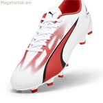 Puma Ultra Play FG/AG ֆուտբոլային կոշիկները նախատեսված են մեծահասակ ֆուտբոլիստների համար, ովքեր պահանջում են արդյունավետություն և դիմացկունություն բնական և արհեստական խոտածածկ դաշտերում: Այս մեծահասակների ֆուտբոլային կոշիկները ունեն PU սինթետիկ նյութից պատրաստված վերին մաս, որը ապահովում է մաշվածության դիմադրություն և ամուր տեղավորում: Դիզայնը համատեղում է նրբագեղ սպիտակ գույնը կարմիր մանրամասների հետ՝ առաջարկելով ժամանակակից և սպորտային ոճ: Դրանք ներառում են TPU Speedplate ներբան, որը ապահովում է օպտիմալ կպչունություն և արդյունավետ շարժիչ ուժ արագ շարժումների և ուղղության փոփոխությունների համար, ինչը կարևոր է դինամիկ խաղի համար: Դրանց FG/AG կոնֆիգուրացիան դրանք դարձնում է բազմակողմանի տարբեր մակերեսների համար՝ բարելավելով կայունությունը և վերահսկողությունը խաղի ընթացքում: Բացի այդ, դրանց տեխնոլոգիապես մշակված կառուցվածքը նվազեցնում է քաշը՝ առանց զոհաբերելու աջակցությունը կամ պաշտպանությունը, ինչը հիմնական առանձնահատկություն է արագություն և ճշգրտություն փնտրող խաղացողների համար: Այս ֆուտբոլային սպորտային կոշիկները ներառում են փորագրված և տպագիր մանրամասներ, որոնք հյուսվածք և ամրացում են հաղորդում հիմնական հատվածներում՝ գնդակի հետ շփումը և դիմացկունությունը բարելավելու համար: Ամփոփելով՝ Puma Ultra Play FG/AG-ն ներկայացնում է նորարարության, ֆունկցիոնալության և ոճի հավասարակշռված համադրություն այն ֆուտբոլիստների համար, ովքեր յուրաքանչյուր խաղում պահանջում են որակ և արդյունավետություն: