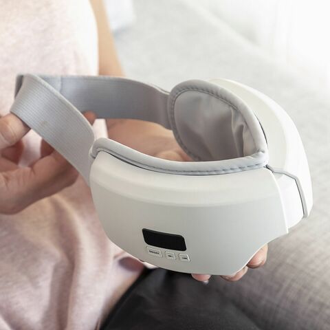4-ը 1-ում բազմաֆունկցիոնալ աչքերի մերսիչ, որն ապահովում է հանգստացնող և վերականգնող մերսում, նպաստում է հանգստին և օգնում է ձեզ քնել: Իր էրգոնոմիկ և կարգավորվող դիզայնի շնորհիվ այն հարմար է բոլորի համար, շատ հարմարավետ է և հեշտ օգտագործման համար: Մաշկի հետ շփման մեջ մտնող ներքին հատվածը պատրաստված է սինթետիկ կաշվից, ուստի այն նրբագեղ տեսք ունի և հարմարավետ է ու փափուկ դիպչելու համար: Քանի որ այն փոխադրելի է և լիցքավորվում է (անլար լիցքավորմամբ), այն հեշտ է տանել ամենուր և կարող է օգտագործվել լիակատար հարմարավետությամբ՝ առանց մալուխների կամ վարդակների անհրաժեշտության: Իր տաքացման գործառույթի շնորհիվ այն ապահովում է հանգստի և բարեկեցության հաճելի զգացողություն՝ հասնելով մոտավորապես 30-42 ºC ջերմաստիճանի: Օդի սեղմումը ճնշում է գործադրում հիմնական հատվածների վրա՝ բազմաթիվ օգտակար ազդեցություններ ստանալու համար: Այն ունի 5 մերսման ռեժիմ՝ օգտագործելով թրթռում, համատեղելով իր տարբեր գործառույթները: Այն նաև ունի ներկառուցված բարձրախոս՝ մի քանի մեղեդիներով և հանգստացնող ձայներով՝ հանգստացնող ազդեցությունը ուժեղացնելու համար, չնայած այն ունի նաև Bluetooth, որպեսզի կարողանաք երաժշտություն լսել այլ սարքերից: Ներառում է USB-C մալուխ: