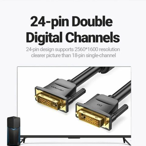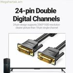 Vention EAABG DVI-D երկարացման մալուխը գործնական և հուսալի լուծում է սարքերի միջև կապը երկարացնելու համար՝ արական DVI-D միացքներով, որը հնարավորություն է տալիս թվային տեսաազդանշանի փոխանցում կատարել առանց որակի կորստի: Այս մալուխի երկարությունը 1.5 մետր է, իդեալական է սարքավորումների միջև անհրաժեշտ հեռավորությունը ապահովելու համար՝ առանց ավելորդ մալուխների: Դրա սև դիզայնը առաջարկում է աննկատ և պրոֆեսիոնալ տեսք, որը հարմար է ինչպես տան, այնպես էլ գրասենյակային միջավայրի համար: Պատրաստված է դիմացկուն նյութերից, այդ թվում՝ PVC ծածկույթով, որը ապահովում է ճկունություն և մաշվածության դիմադրություն, գումարած ոսկեզօծ միացումներ՝ կապը օպտիմալացնելու և օքսիդացումը նվազեցնելու համար, երաշխավորելով կայուն և ուժեղ ազդանշան: Այս մալուխը աջակցում է բարձր թույլտվության թվային փոխանցմանը, խորհուրդ է տրվում մոնիտորներ, գրաֆիկական քարտեր և այլ սարքեր, որոնք համատեղելի են արական DVI-D միակցիչների հետ, ապահովելով ավելի լավ տեսողական որակ՝ համեմատած անալոգային միացումների հետ։ արականից արական միակցիչ մալուխը թույլ է տալիս ուղղակի երկարացում առանց լրացուցիչ ադապտերների՝ ապահովելով համատեղելիություն և օգտագործման հեշտություն։ Vention EAABG մալուխը բազմակողմանի և արդյունավետ ընտրություն է այն օգտատերերի համար, ովքեր անհրաժեշտ են հուսալիորեն երկարացնել իրենց DVI միացումները՝ որակյալ մակերեսով, պահպանելով ազդանշանի գերազանց որակը և պաշտպանությունը սովորական ֆիզիկական մաշվածությունից։